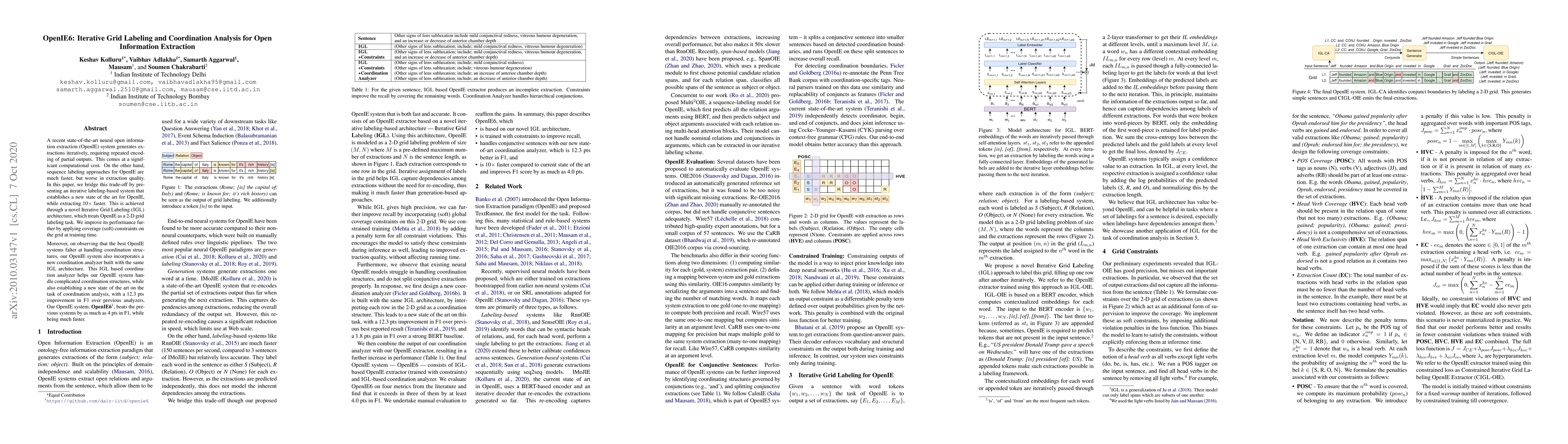 The paper introduces OpenIE6, an iterative labeling-based Open Information Extraction system that bridges the gap between speed and quality. It uses an Iterative Grid Labeling (IGL) architecture for 10x faster extraction with state-of-the-art results. Additionally, OpenIE6 includes an IGL-based coordination analyzer, improving coordination analysis performance by 12.3 points in F1, and outperforms previous systems by 4 points in F1 while being significantly faster.