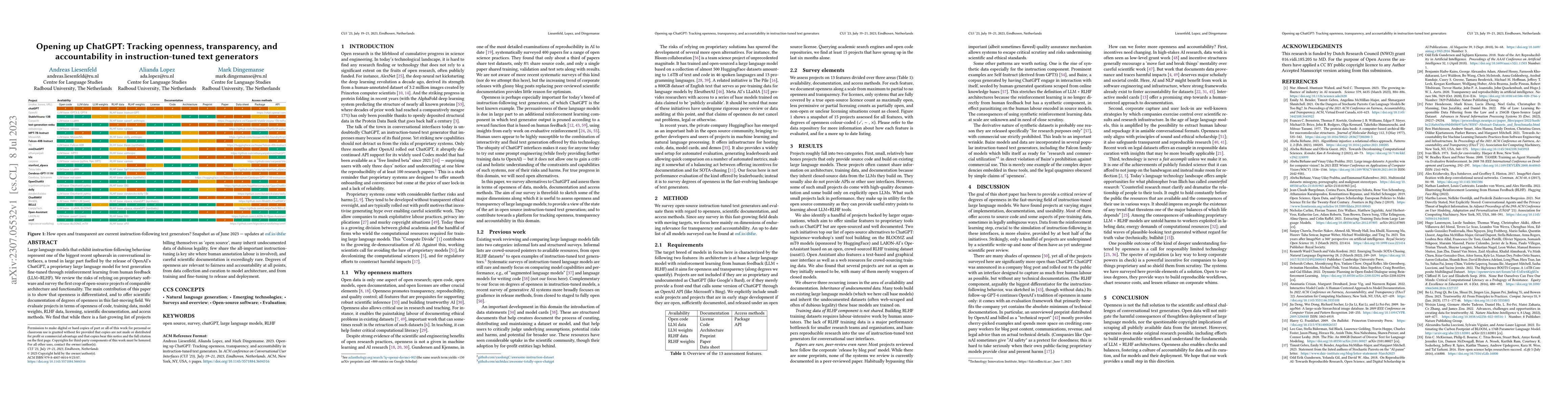 This paper examines the varying degrees of openness in instruction-tuned text generators, particularly focusing on the risks associated with proprietary models like ChatGPT. It evaluates open-source alternatives based on criteria such as code, data, and documentation transparency, highlighting the importance of accountability and fairness throughout the model development lifecycle.