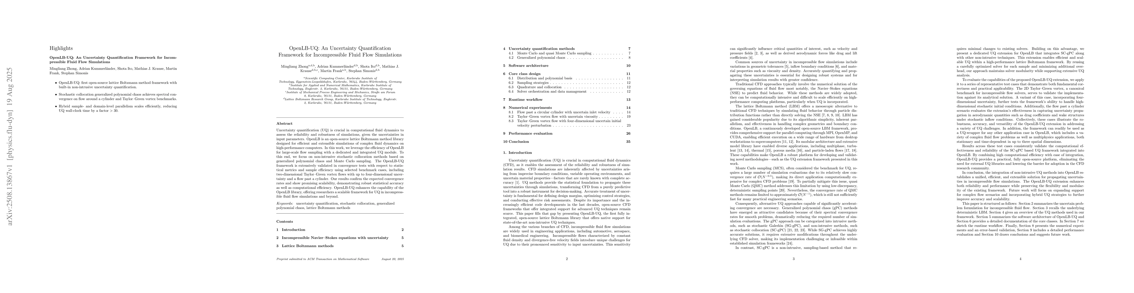 Uncertainty quantification (UQ) is crucial in computational fluid dynamics to assess the reliability and robustness of simulations, given the uncertainties in input parameters. OpenLB is an open-source lattice Boltzmann method library designed for efficient and extensible simulations of complex fluid dynamics on high-performance computers. In this work, we leverage the efficiency of OpenLB for large-scale flow sampling with a dedicated and integrated UQ module. To this end, we focus on non-intrusive stochastic collocation methods based on generalized polynomial chaos and Monte Carlo sampling. The OpenLB-UQ framework is extensively validated in convergence tests with respect to statistical metrics and sample efficiency using selected benchmark cases, including two-dimensional Taylor--Green vortex flows with up to four-dimensional uncertainty and a flow past a cylinder. Our results confirm the expected convergence rates and show promising scalability, demonstrating robust statistical accuracy as well as computational efficiency. OpenLB-UQ enhances the capability of the OpenLB library, offering researchers a scalable framework for UQ in incompressible fluid flow simulations and beyond.