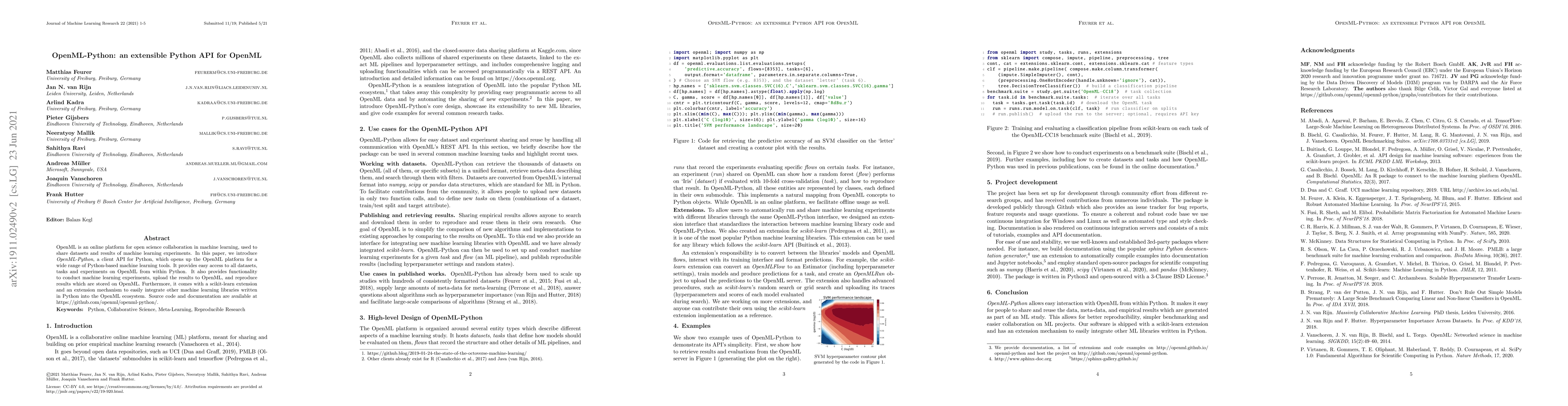 Joaquin Vanschoren, Frank Hutter, Pieter Gijsbers et al.