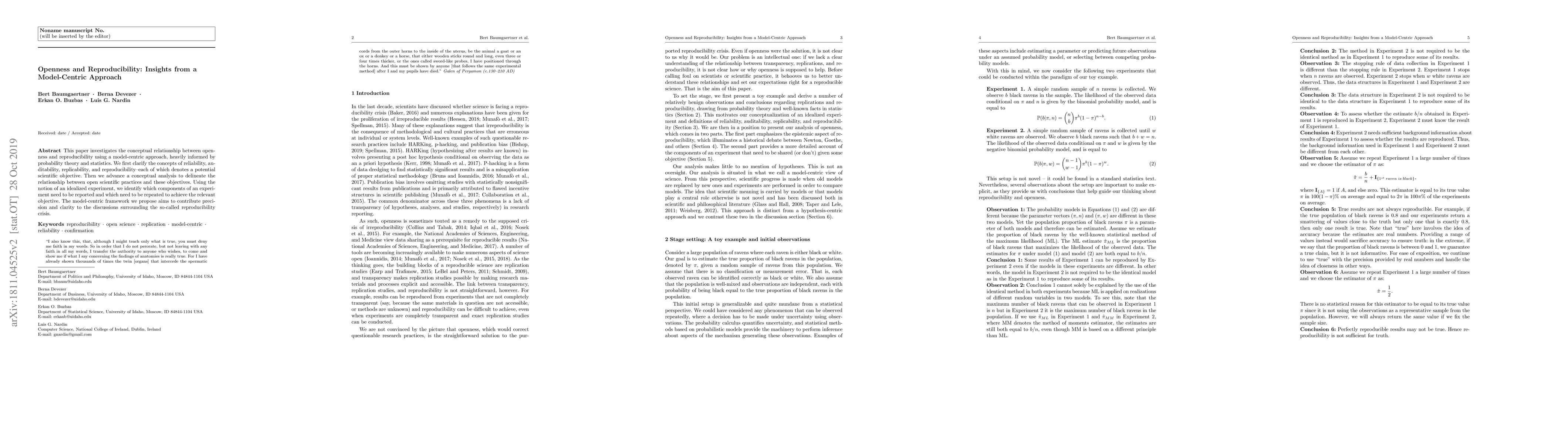 This paper explores the link between openness in scientific practices and reproducibility through a model-centric approach grounded in probability theory and statistics. It clarifies key concepts like reliability, auditability, and replicability, and proposes a framework to determine which experiment components need reporting versus repetition to achieve scientific objectives, aiming to enhance clarity in the reproducibility crisis discourse.