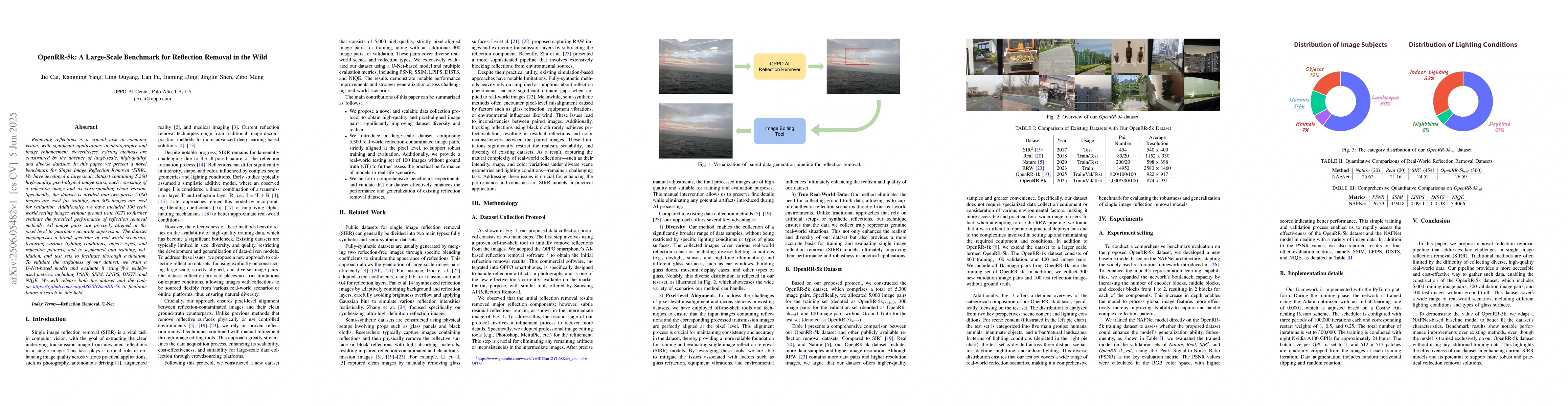 Removing reflections is a crucial task in computer vision, with significant applications in photography and image enhancement. Nevertheless, existing methods are constrained by the absence of large-scale, high-quality, and diverse datasets. In this paper, we present a novel benchmark for Single Image Reflection Removal (SIRR). We have developed a large-scale dataset containing 5,300 high-quality, pixel-aligned image pairs, each consisting of a reflection image and its corresponding clean version. Specifically, the dataset is divided into two parts: 5,000 images are used for training, and 300 images are used for validation. Additionally, we have included 100 real-world testing images without ground truth (GT) to further evaluate the practical performance of reflection removal methods. All image pairs are precisely aligned at the pixel level to guarantee accurate supervision. The dataset encompasses a broad spectrum of real-world scenarios, featuring various lighting conditions, object types, and reflection patterns, and is segmented into training, validation, and test sets to facilitate thorough evaluation. To validate the usefulness of our dataset, we train a U-Net-based model and evaluate it using five widely-used metrics, including PSNR, SSIM, LPIPS, DISTS, and NIQE. We will release both the dataset and the code on https://github.com/caijie0620/OpenRR-5k to facilitate future research in this field.
