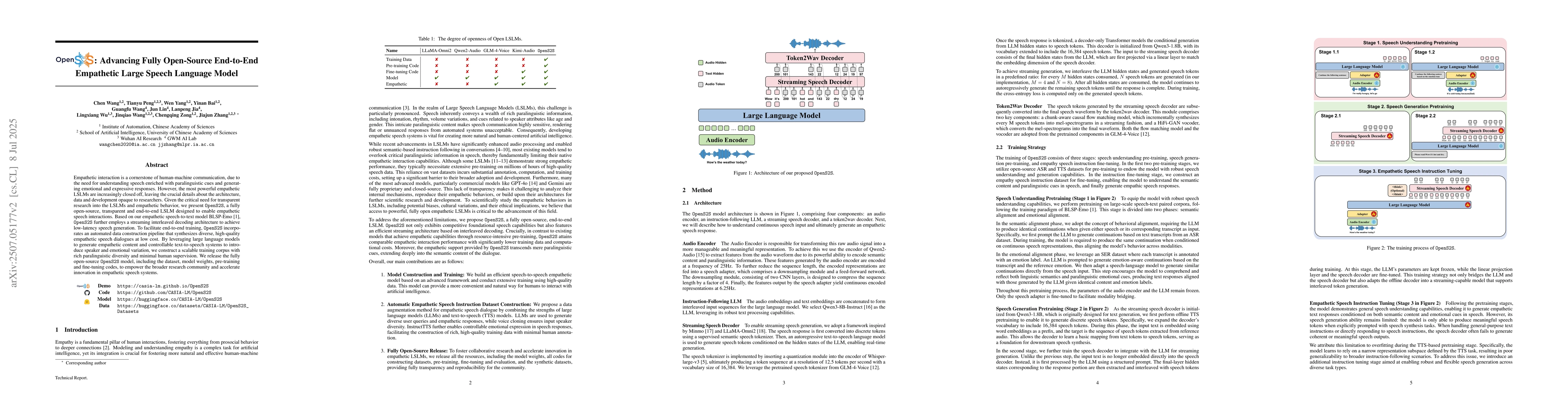 The research presents OpenS2S, a fully open-source, transparent, and end-to-end large speech language model (LSLM) designed for empathetic speech interactions. It employs a streaming interleaved decoding architecture for low-latency speech generation and an automated data construction pipeline to synthesize diverse, high-quality empathetic speech dialogues at low cost.