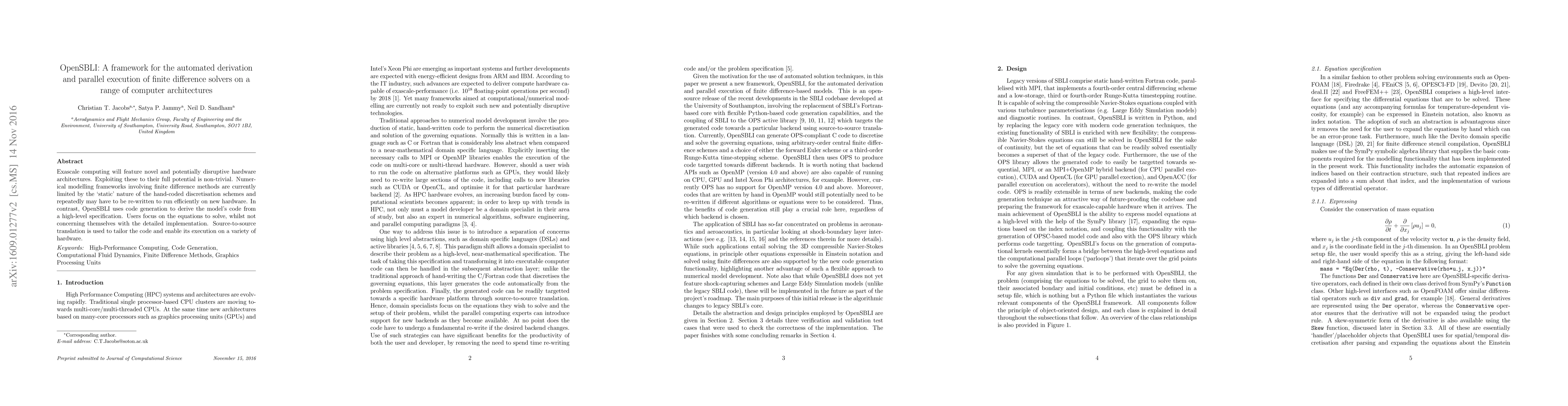 OpenSBLI automates the derivation and parallel execution of finite difference solvers across diverse computer architectures, eliminating the need for manual code adaptation to new hardware. This framework leverages code generation and source-to-source translation to efficiently tailor numerical models to various computational environments.