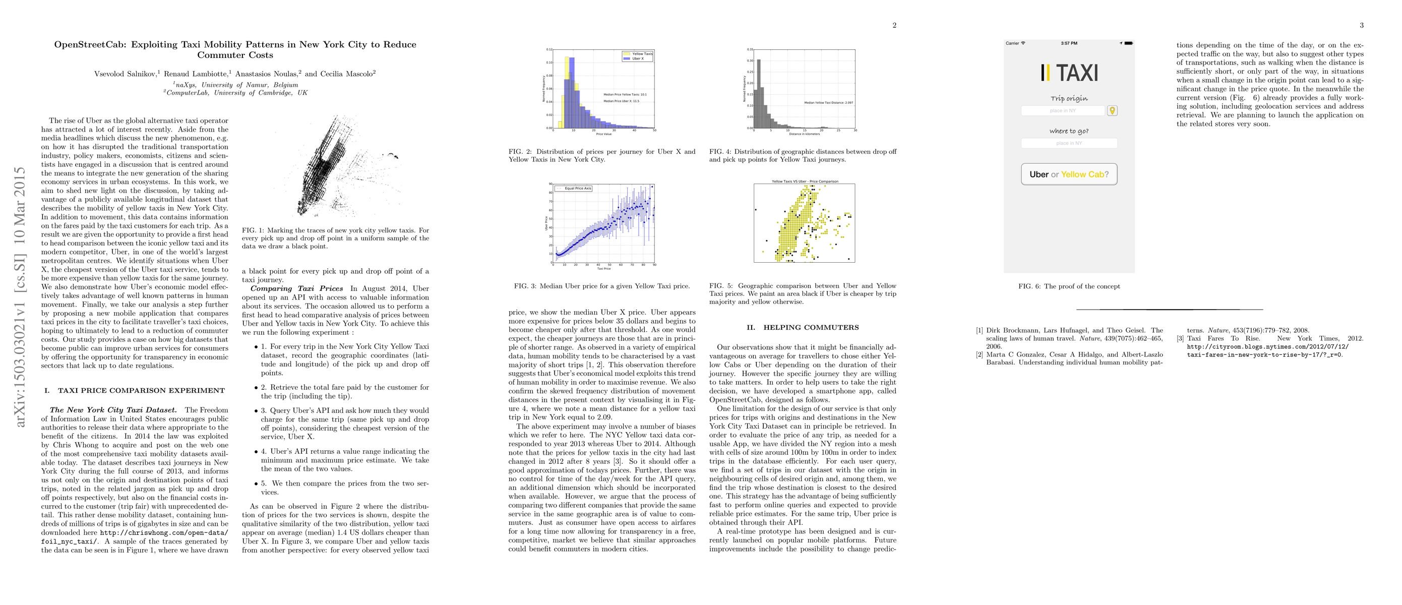 This research paper analyzes taxi mobility patterns in New York City to identify situations where Uber X is more expensive than yellow taxis for the same journey, proposing a mobile app to compare prices and reduce commuter costs.