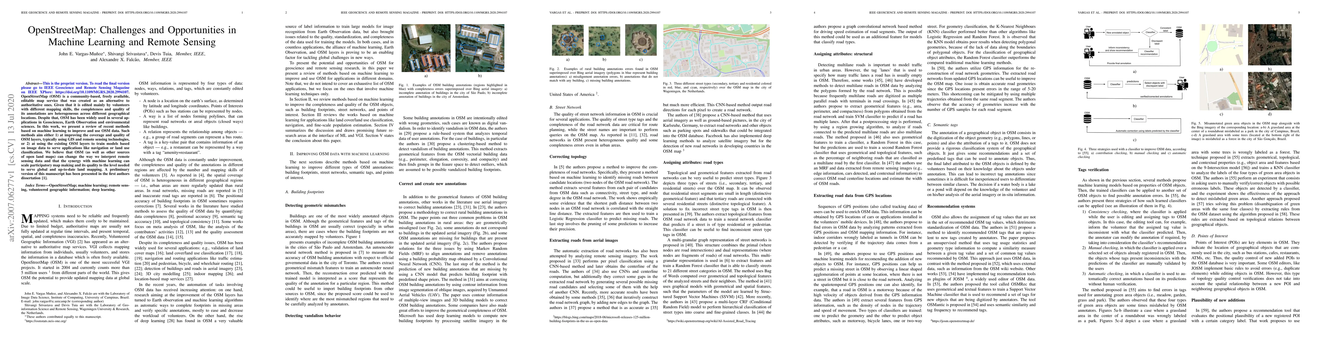 OpenStreetMap (OSM) is a community-based, freely available, editable map service that was created as an alternative to authoritative ones. Given that it is edited mainly by volunteers with different mapping skills, the completeness and quality of its annotations are heterogeneous across different geographical locations. Despite that, OSM has been widely used in several applications in {Geosciences}, Earth Observation and environmental sciences. In this work, we present a review of recent methods based on machine learning to improve and use OSM data. Such methods aim either 1) at improving the coverage and quality of OSM layers, typically using GIS and remote sensing technologies, or 2) at using the existing OSM layers to train models based on image data to serve applications like navigation or {land use} classification. We believe that OSM (as well as other sources of open land maps) can change the way we interpret remote sensing data and that the synergy with machine learning can scale participatory map making and its quality to the level needed to serve global and up-to-date land mapping.