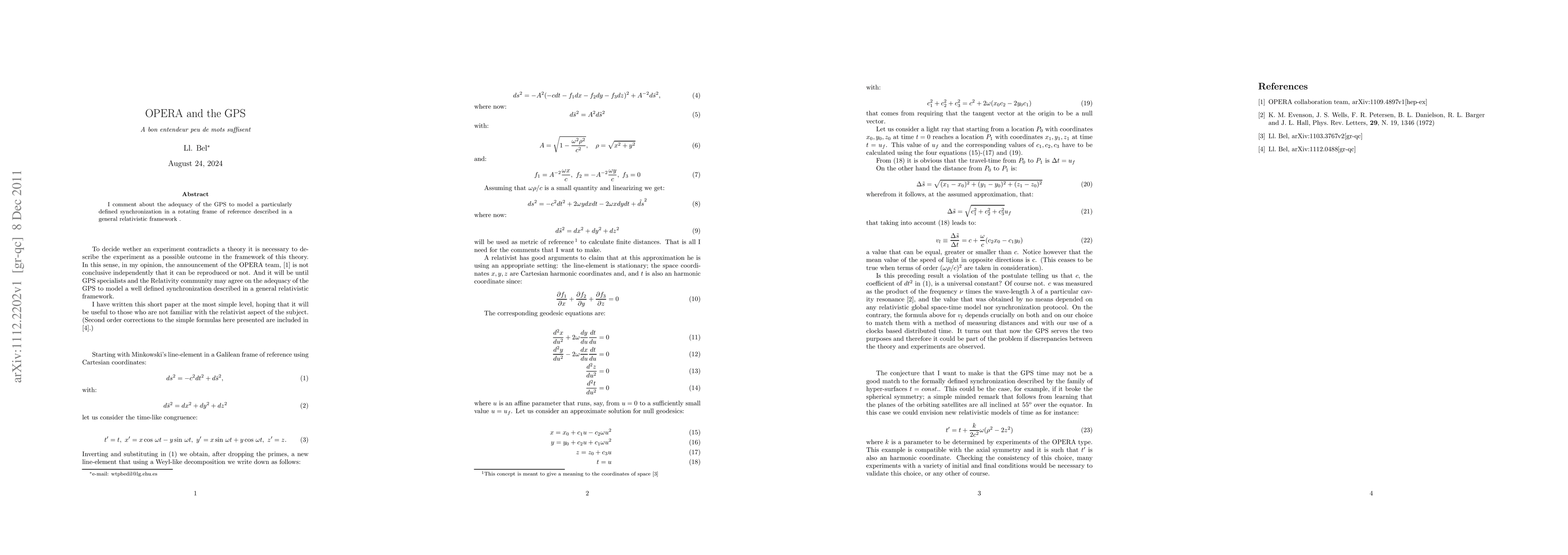 I comment about the adequacy of the GPS to model a particularly defined synchronization in a rotating frame of reference described in a general relativistic framework.