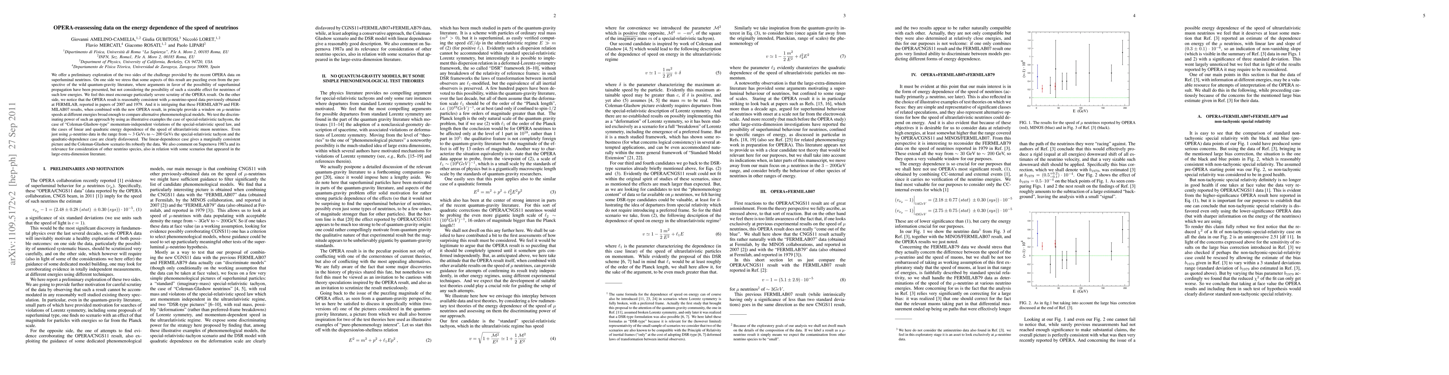 We offer a preliminary exploration of the two sides of the challenge provided by the recent OPERA data on superluminal neutrinos. On one side we stress that some aspects of this result are puzzling even from the perspective of the wild quantum-gravity literature, where arguments in favor of the possibility of superluminal propagation have been presented, but not considering the possibility of such a sizeable effect for neutrinos of such low energies. We feel this must encourage particularly severe scrutiny of the OPERA result. On the other side, we notice that the OPERA result is reasonably consistent with $\mu$-neutrino-speed data previously obtained at FERMILAB, reported in papers of 2007 and 1979. And it is intriguing that these FERMILAB79 and FERMILAB07 results, when combined with the new OPERA result, in principle provide a window on $\mu$-neutrino speeds at different energies broad enough to compare alternative phenomenological models. We test the discriminating power of such an approach by using as illustrative examples the case of special-relativistic tachyons, the case of "Coleman-Glashow-type" momentum-independent violations of the special-relativistic speed law, and the cases of linear and quadratic energy dependence of the speed of ultrarelativistic muon neutrinos. Even just using $\mu$-neutrino data in the range from $\sim$ 3 GeVs to $\sim$ 200 GeVs the special-relativistic tachyon and the quadratic-dependence case are clearly disfavoured. The linear-dependence case gives a marginally consistent picture and the Coleman-Glashow scenario fits robustly the data. We also comment on Supernova 1987a and its relevance for consideration of other neutrino species, also in relation with some scenarios that appeared in the large-extra-dimension literature.