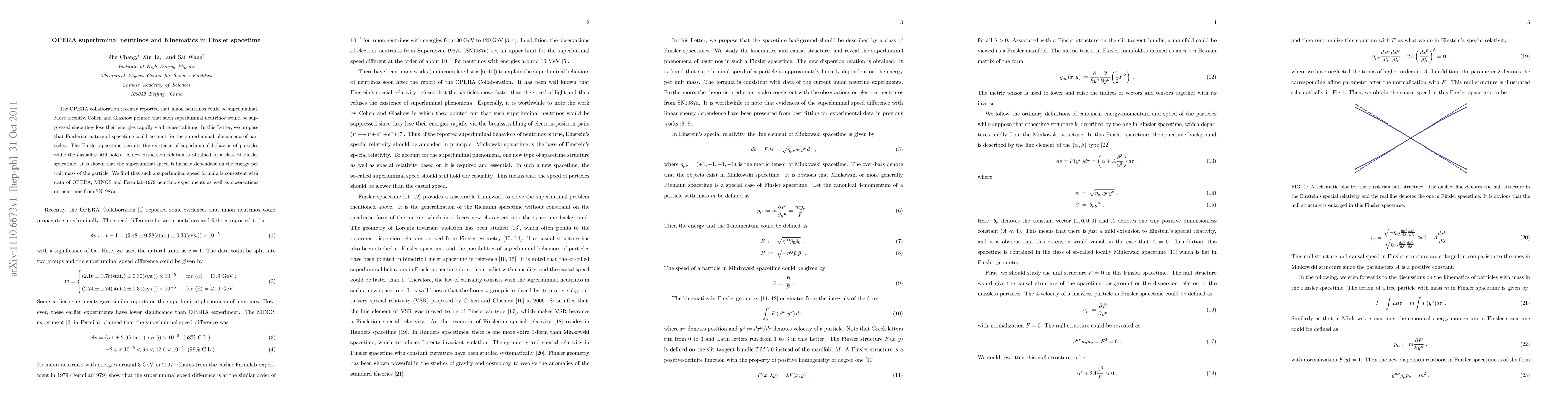 This paper proposes that the superluminal behavior of neutrinos, as reported by the OPERA collaboration, can be explained by a Finslerian nature of spacetime, which allows for superluminal speeds while preserving causality. A new dispersion relation is derived, showing a linear dependence of superluminal speed on energy per unit mass, consistent with various experimental data.