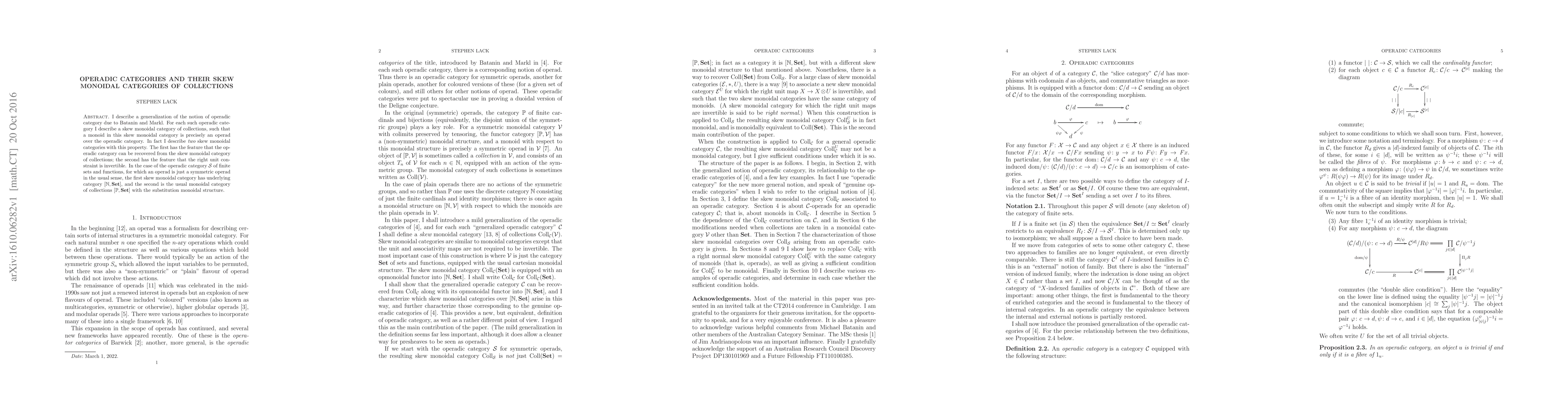 I describe a generalization of the notion of operadic category due to Batanin and Markl. For each such operadic category I describe a skew monoidal category of collections, such that a monoid in this skew monoidal category is precisely an operad over the operadic category. In fact I describe two skew monoidal categories with this property. The first has the feature that the operadic category can be recovered from the skew monoidal category of collections; the second has the feature that the right unit constraint is invertible. In the case of the operadic category S of finite sets and functions, for which an operad is just a symmetric operad in the usual sense, the first skew monoidal category has underlying category [N, Set], and the second is the usual monoidal category of collections [P, Set] with the substitution monoidal structure.