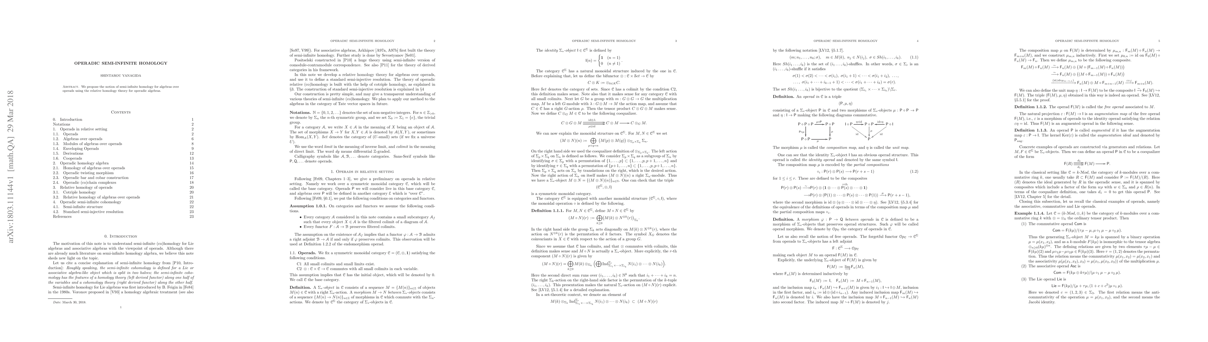 This paper introduces semi-infinite homology for algebras over operads using relative homology theory, providing a new approach to studying algebraic structures.