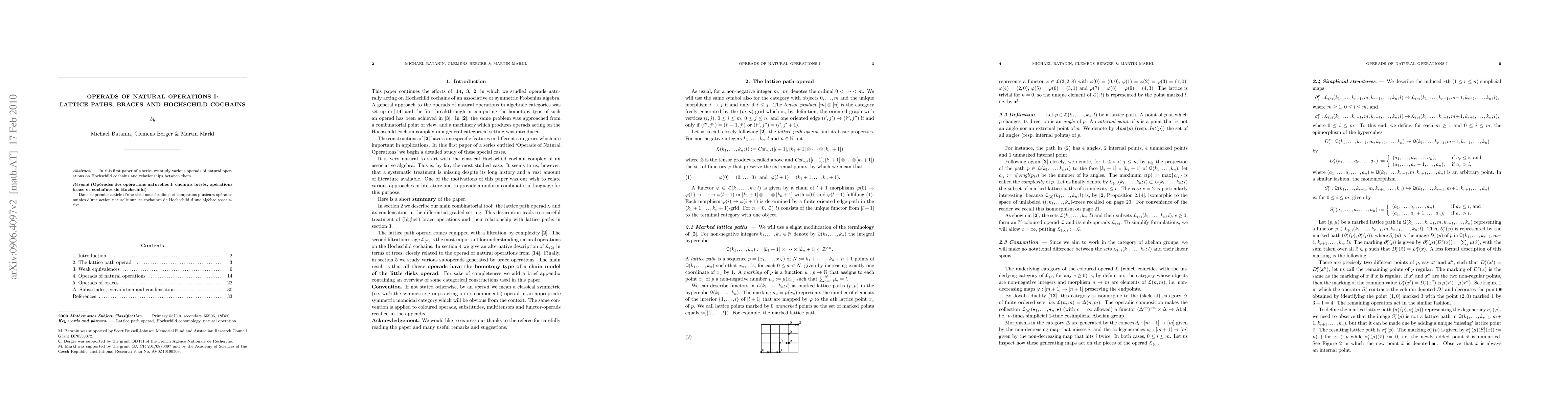 Summary: This paper explores operads associated with natural operations on Hochschild cochains, focusing on lattice paths, braces, and their interrelations, setting the stage for further studies in the series.