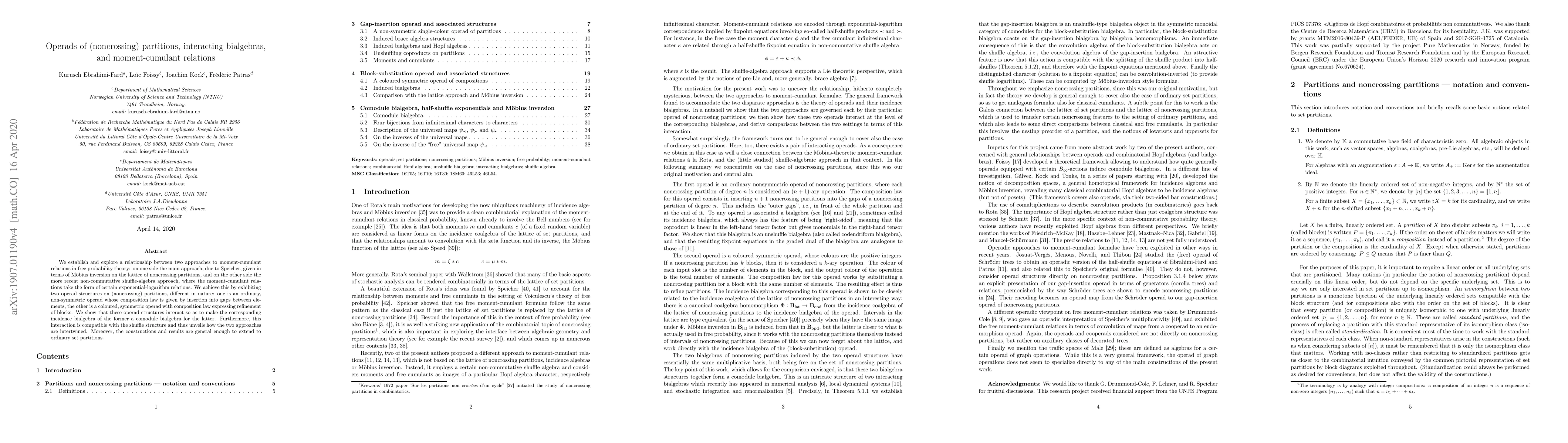 The paper introduces and analyzes two operad structures on (noncrossing) partitions, demonstrating their interaction via a comodule bialgebra relationship, which unifies the Speicher and shuffle-algebra approaches to moment-cumulant relations.