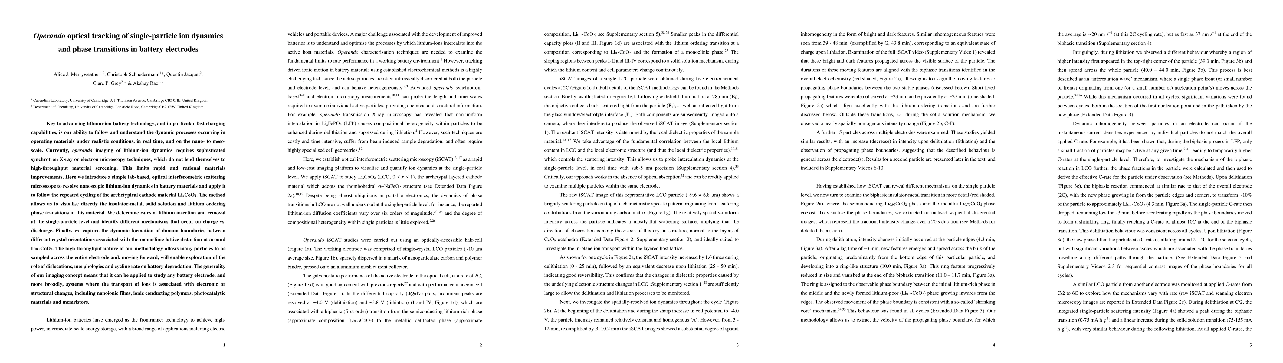 This paper introduces a lab-based optical interferometric scattering microscope to study nanoscopic lithium-ion dynamics in battery electrodes, specifically Li$_x$CoO$_2$, enabling visualization of phase transitions and domain boundary formation. The high-throughput method facilitates rapid material screening and understanding of ion transport mechanisms.