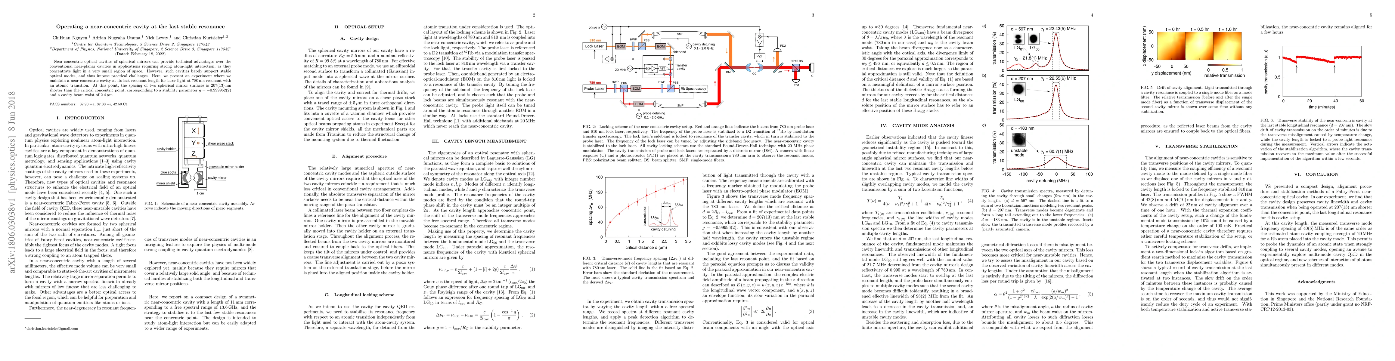 Near-concentric optical cavities of spherical mirrors can provide technical advantages over the conventional near-planar cavities in applications requiring strong atom-light interaction, as they concentrate light in a very small region of space. However, such cavities barely support stable optical modes, and thus impose practical challenges. Here, we present an experiment where we maintain a near-concentric cavity at its last resonant length for laser light at 780 nm resonant with an atomic transition. At this point, the spacing of two spherical mirror surfaces is 207(13) nm shorter than the critical concentric point, corresponding to a stability parameter g=-0.999962(2) and a cavity beam waist of 2.4 $\mu$m.