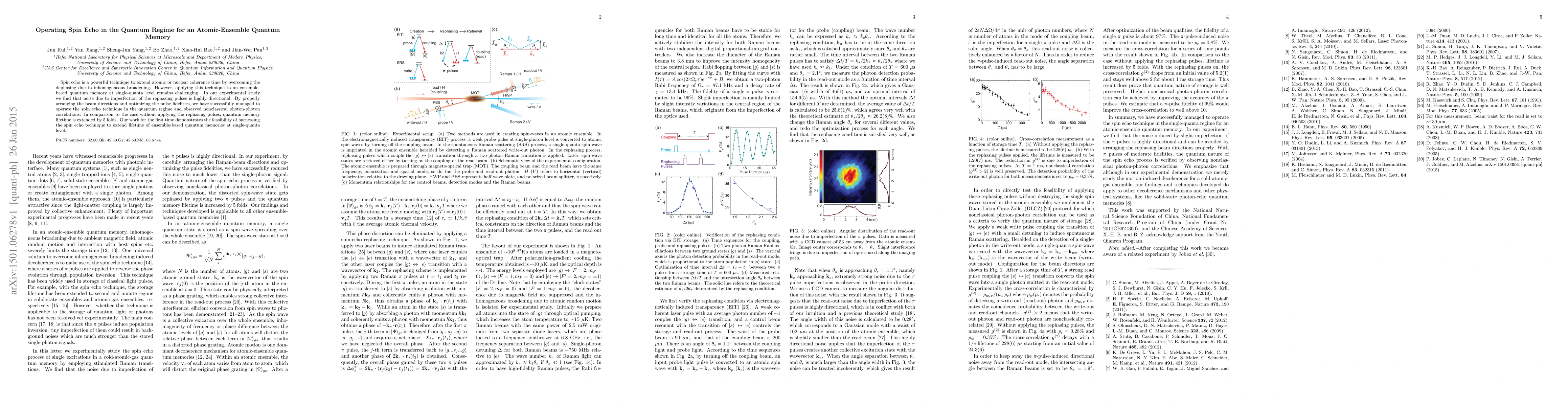 This study demonstrates the successful application of spin echo technique to extend the coherence time of an atomic-ensemble quantum memory in the quantum regime by overcoming dephasing noise. By optimizing the beam directions and pulse fidelities, the researchers achieved a five-fold increase in memory lifetime and observed nonclassical photon-photon correlations.