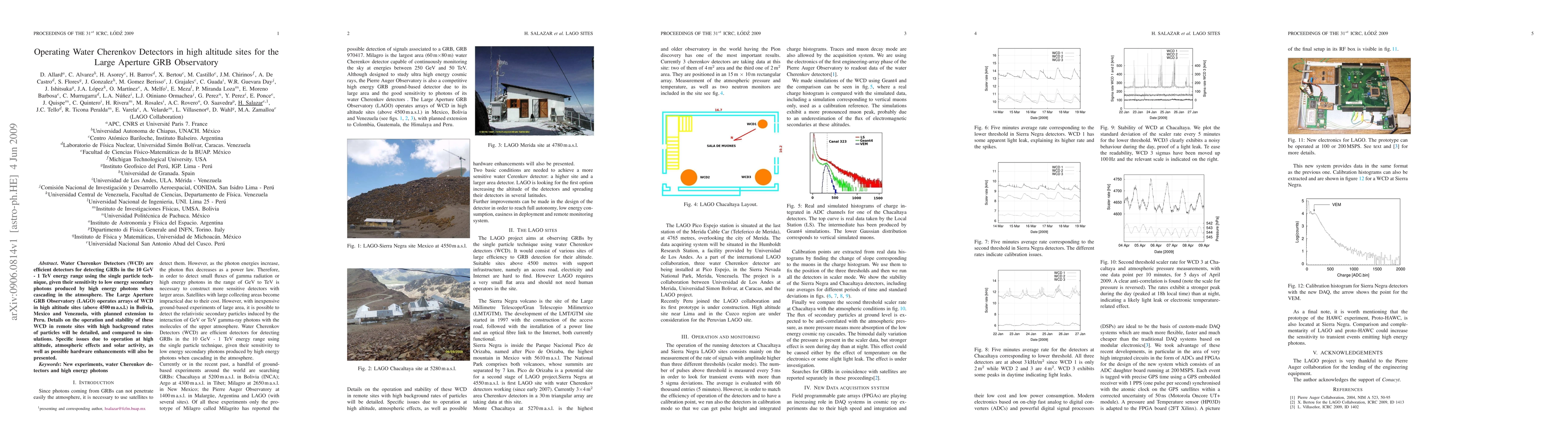 This paper discusses the operation of Water Cherenkov Detectors (WCD) for the Large Aperture GRB Observatory (LAGO) at high altitude sites in Bolivia, Mexico, and Venezuela, focusing on their efficiency and stability in detecting GRBs in the 10 GeV - 1 TeV energy range. It also addresses challenges and enhancements needed for optimal performance in remote, high-altitude environments.