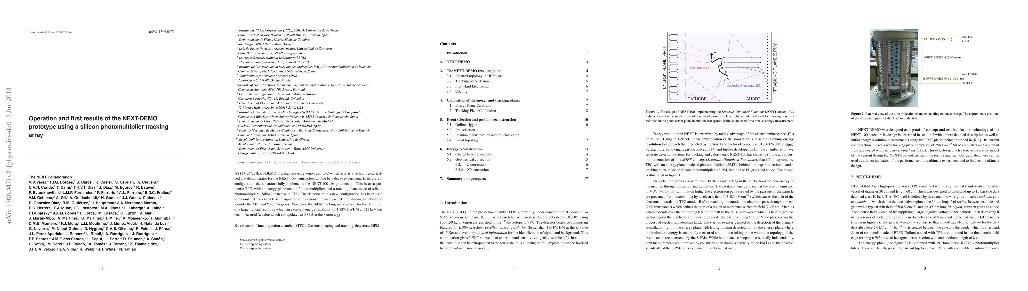The NEXT-DEMO prototype, a high-pressure xenon gas Time Projection Chamber (TPC), successfully implements the NEXT-100 design concept using a silicon photomultiplier tracking array. The detector demonstrated excellent energy resolution, achieving 1.82% FWHM at 511 keV, which extrapolates to 0.83% at the xenon Qbetabeta.