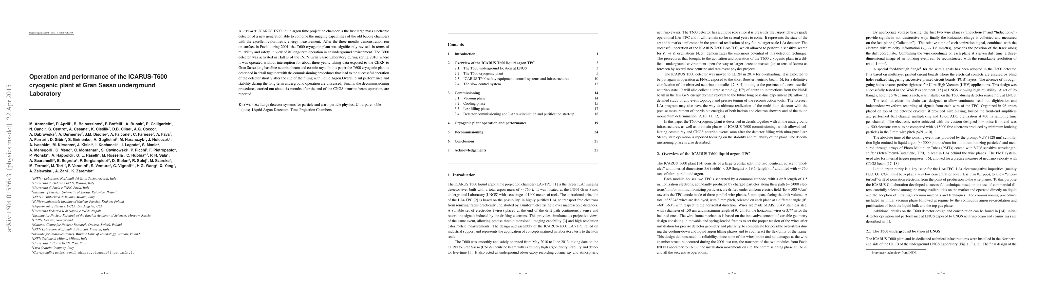 This paper details the operation and performance of the ICARUS T600 cryogenic plant in the Gran Sasso underground laboratory, highlighting its successful long-term operation and stability during neutrino beam and cosmic ray exposure, followed by decommissioning procedures.