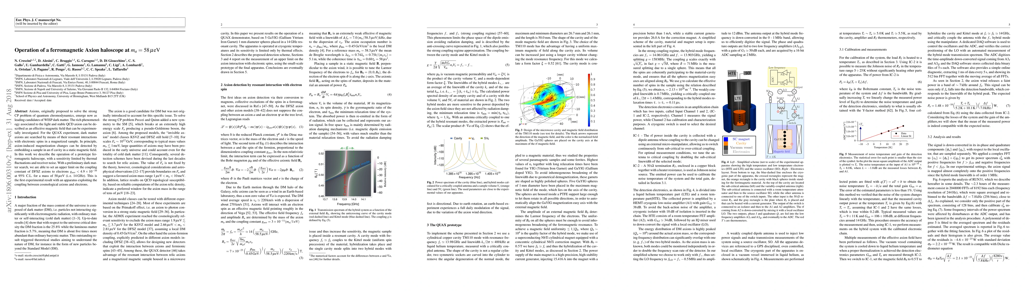 This paper details the operation of a ferromagnetic axion haloscope designed to detect axions, a leading dark matter candidate, through their interaction with electronic spins in a magnetized sample. The experiment sets an upper limit on the coupling constant of DFSZ axions to electrons, marking the first experimental result using this novel detection method.