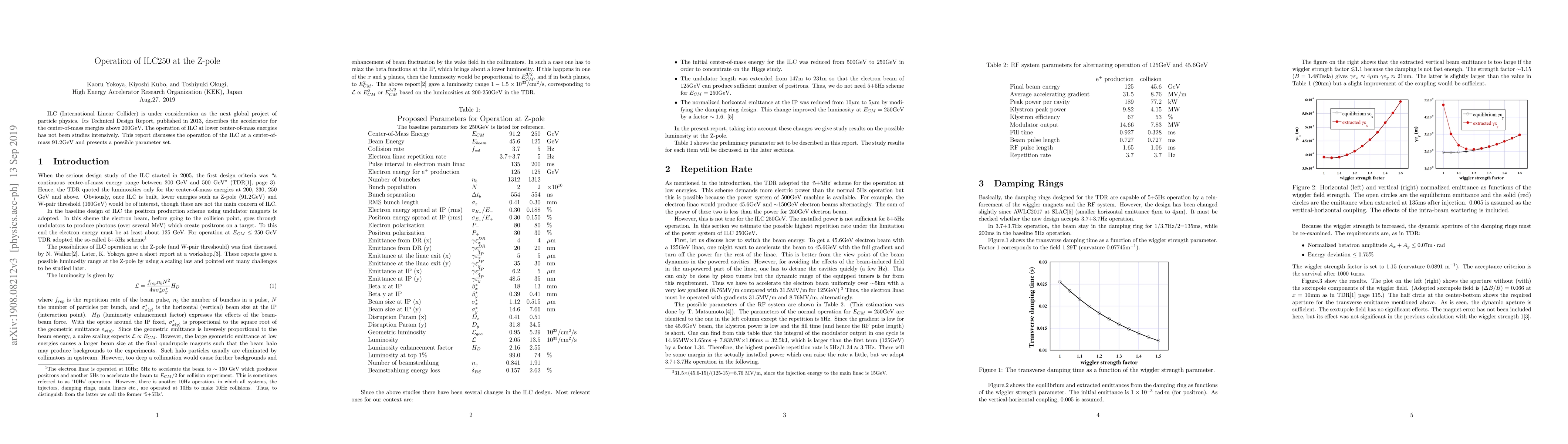 This paper explores the operation of the International Linear Collider (ILC) at a lower center-of-mass energy of 91.2GeV, presenting a potential parameter set for this configuration, as prior studies have not been intensive at such lower energies.