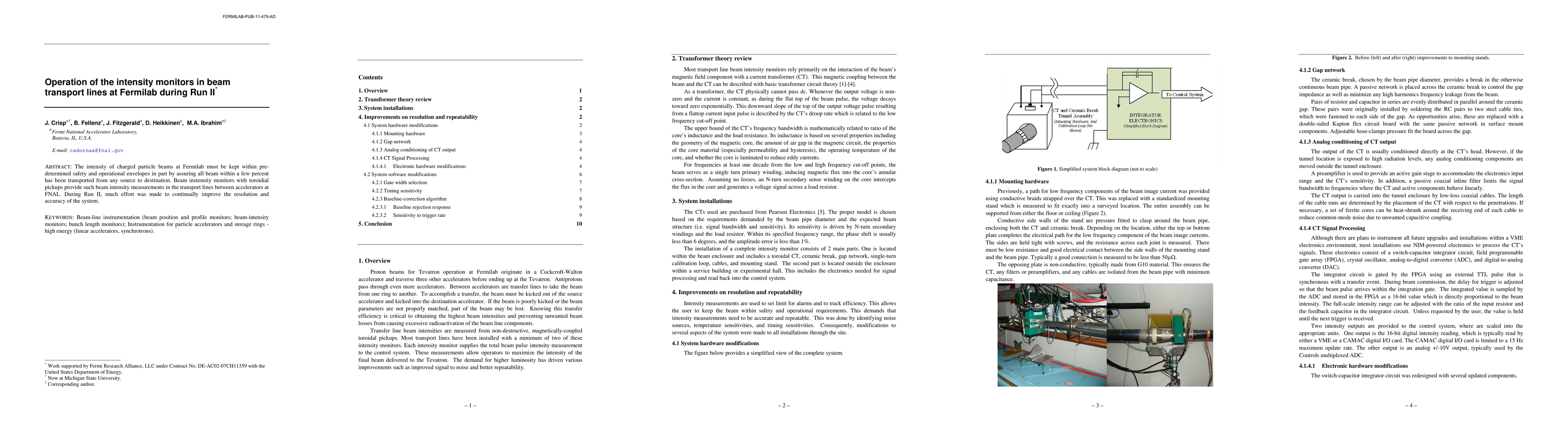 Summary: This paper discusses the operation of toroidal pickup monitors in Fermilab's beam transport lines during Run II, focusing on enhancing the resolution and accuracy of beam intensity measurements to ensure safe and efficient transport of charged particles.