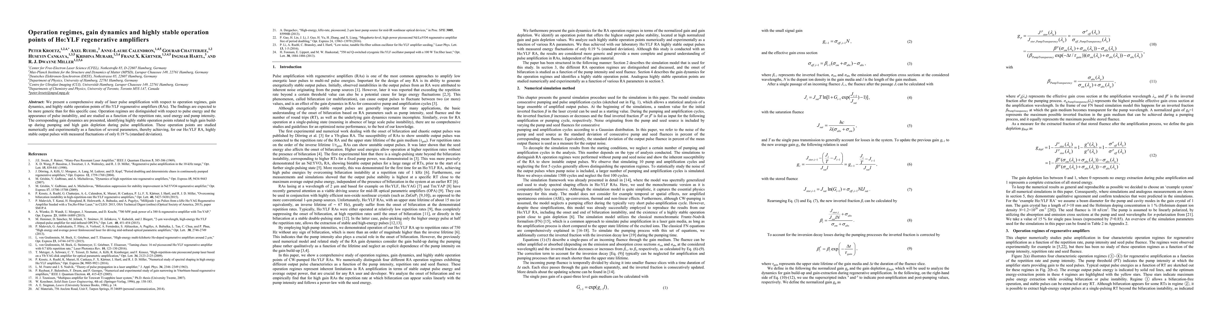 This study investigates the operation regimes, gain dynamics, and stable operation points of Ho:YLF regenerative amplifiers, identifying conditions that minimize pulse instability and achieve highly stable output pulses with minimal fluctuations. Experimental and numerical analyses reveal optimal parameters for achieving these stable operation points.
