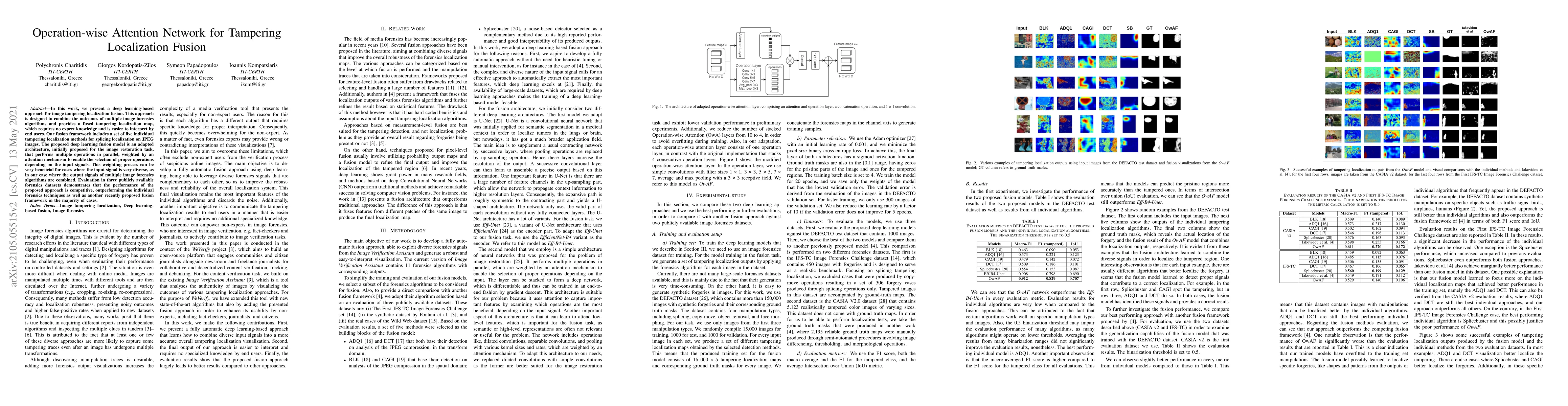 This paper introduces a deep learning-based fusion model for image tampering localization that combines outputs from multiple forensics algorithms into a single, interpretable map. The model uses an attention network to weigh and select the most appropriate operations, achieving competitive performance across various datasets.