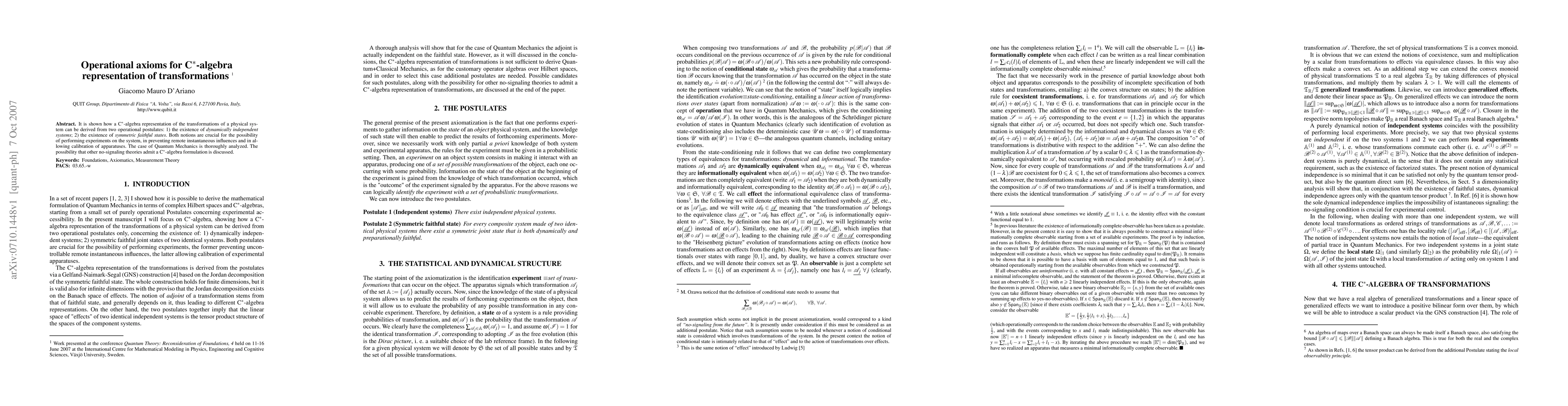 This paper derives a C*-algebra representation for physical system transformations based on two operational postulates: dynamically independent systems and symmetric faithful states, crucial for experimental calibration and preventing instantaneous influences. The analysis focuses on Quantum Mechanics, with a discussion on the possibility of similar formulations in other no-signaling theories.