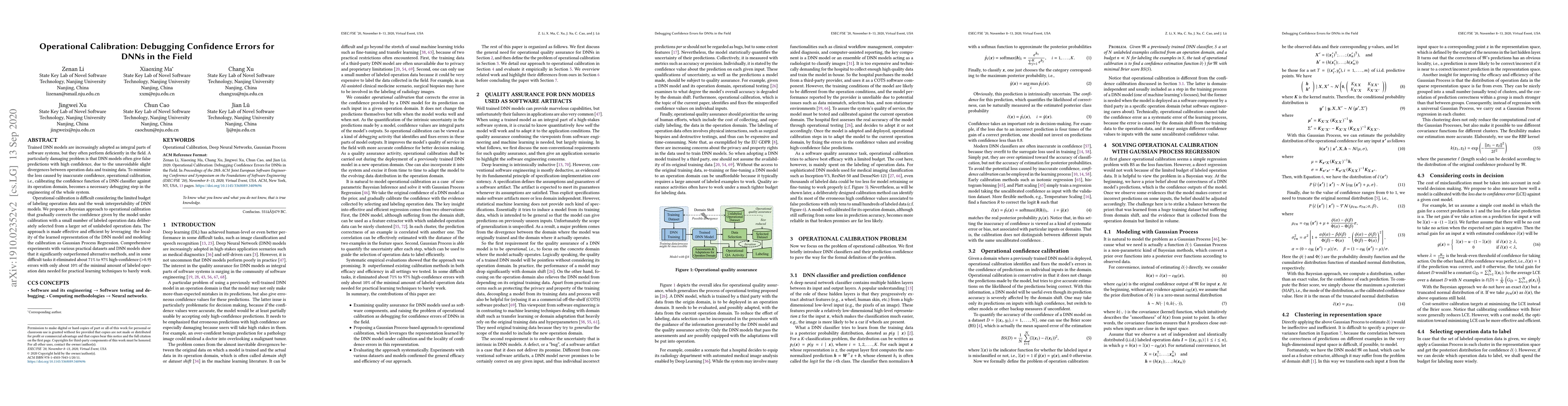 Trained DNN models are increasingly adopted as integral parts of software systems, but they often perform deficiently in the field. A particularly damaging problem is that DNN models often give false predictions with high confidence, due to the unavoidable slight divergences between operation data and training data. To minimize the loss caused by inaccurate confidence, operational calibration, i.e., calibrating the confidence function of a DNN classifier against its operation domain, becomes a necessary debugging step in the engineering of the whole system. Operational calibration is difficult considering the limited budget of labeling operation data and the weak interpretability of DNN models. We propose a Bayesian approach to operational calibration that gradually corrects the confidence given by the model under calibration with a small number of labeled operation data deliberately selected from a larger set of unlabeled operation data. The approach is made effective and efficient by leveraging the locality of the learned representation of the DNN model and modeling the calibration as Gaussian Process Regression. Comprehensive experiments with various practical datasets and DNN models show that it significantly outperformed alternative methods, and in some difficult tasks it eliminated about 71% to 97% high-confidence (>0.9) errors with only about 10\% of the minimal amount of labeled operation data needed for practical learning techniques to barely work.