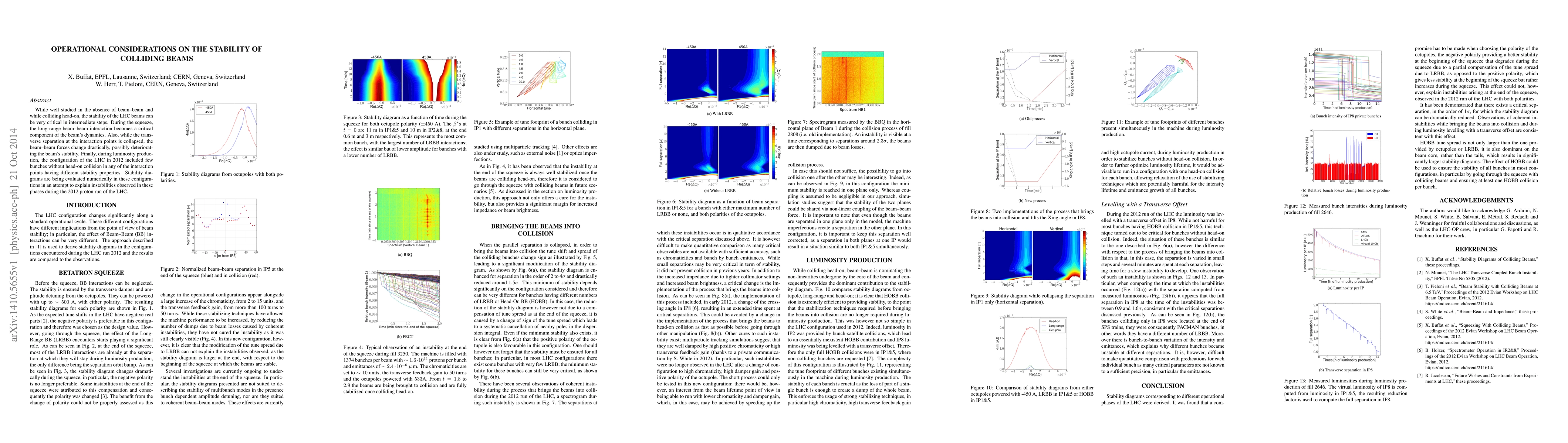 While well studied in the absence of beam-beam and while colliding head-on, the stability of the LHC beams can be very critical in intermediate steps. During the squeeze, the long-range beam-beam interaction becomes a critical component of the beam's dynamics. Also, while the transverse separation at the interaction points is collapsed, the beam-beam forces change drastically, possibly deteriorating the beam's stability. Finally, during luminosity production, the configuration of the LHC in 2012 included few bunches without head-on collision in any of the interaction points having different stability properties. Stability diagrams are being evaluated numerically in these configurations in an attempt to explain instabilities observed in these phases during the 2012 proton run of the LHC.