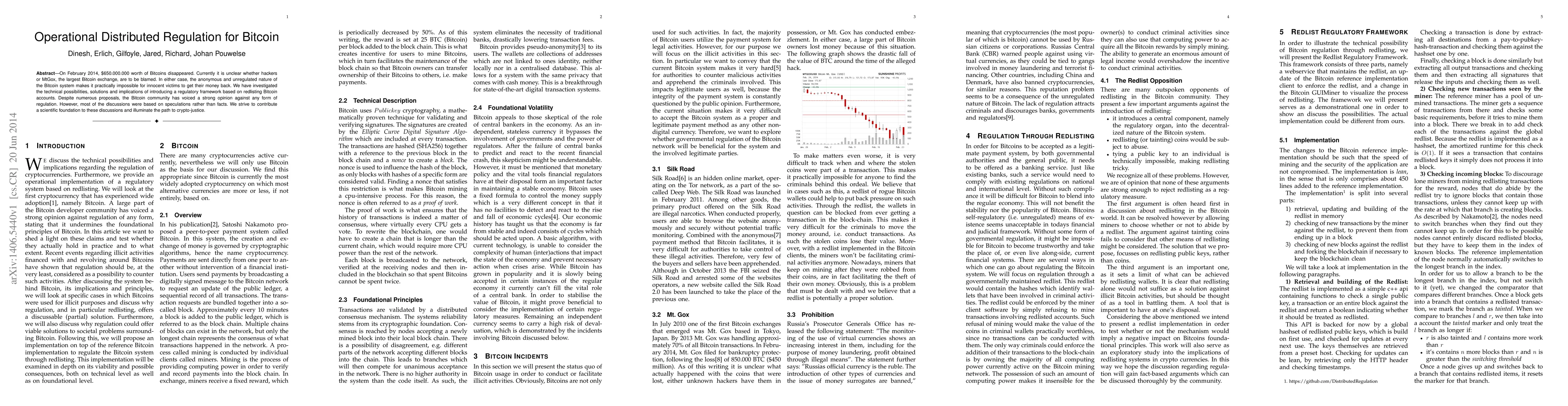 This paper investigates the technical feasibility and implications of implementing a regulatory framework for Bitcoin, specifically through redlisting accounts, to address the 2014 MtGox incident where $650 million worth of Bitcoins disappeared. Despite community resistance, the authors aim to provide a scientific basis for discussions on regulation to potentially restore trust and enable justice for victims.