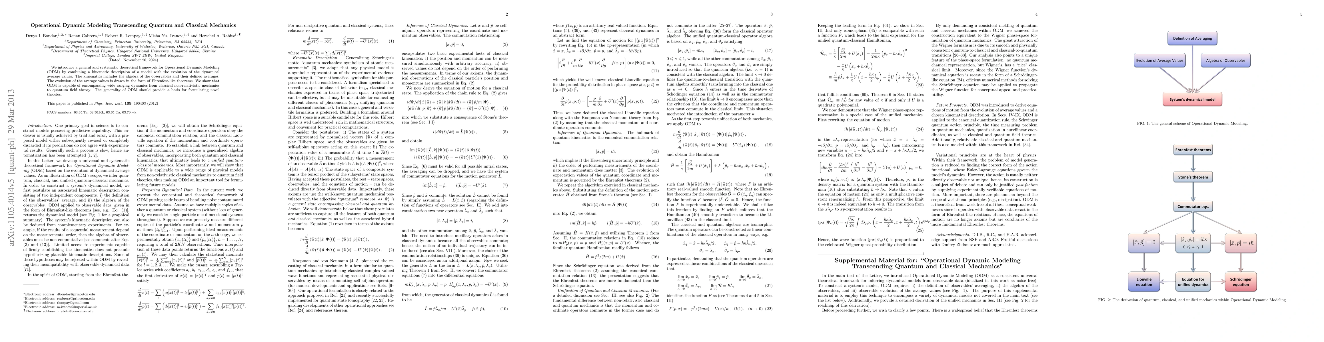 This paper proposes a unified theoretical framework called Operational Dynamic Modeling (ODM) that combines kinematics and the evolution of dynamical averages, capable of spanning classical and quantum mechanics to quantum field theory, with potential for developing new theories.
