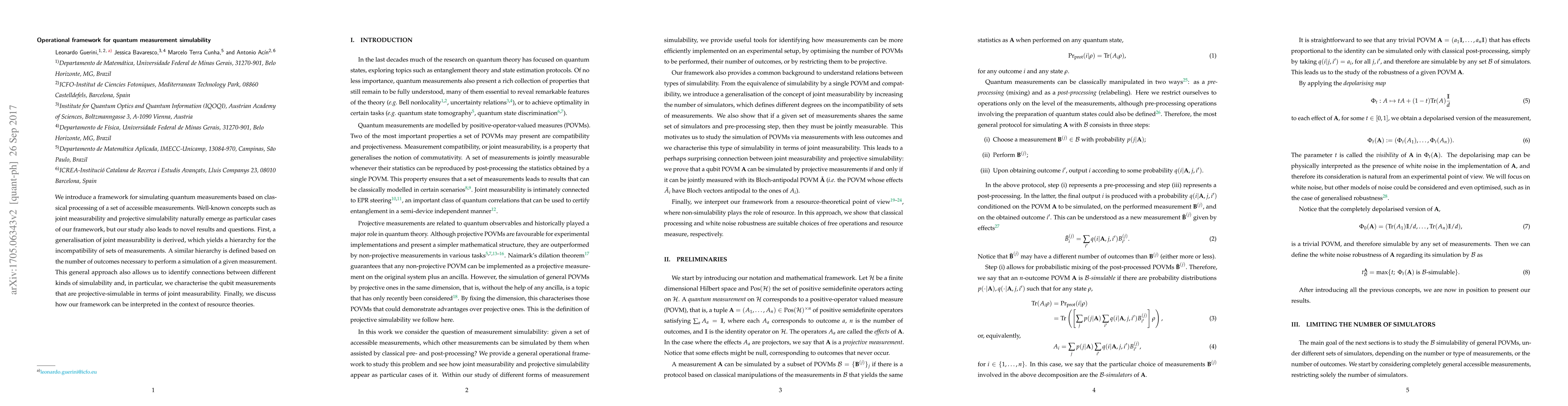 This paper proposes a framework for simulating quantum measurements through classical processing of accessible measurements, revealing hierarchies of measurement incompatibility and outcomes. It connects different simulability types and characterizes projective-simulable qubit measurements in terms of joint measurability, with implications for resource theories.