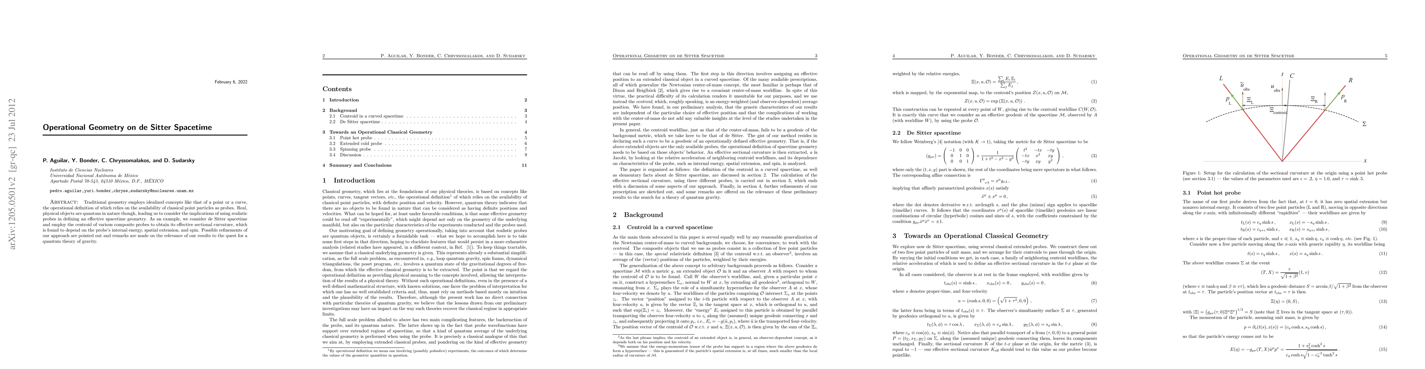 This research paper explores how using realistic probes to measure spacetime geometry can reveal its dependence on probe properties like energy and spin. It applies this approach to de Sitter spacetime and finds that its sectional curvature is influenced by these factors.