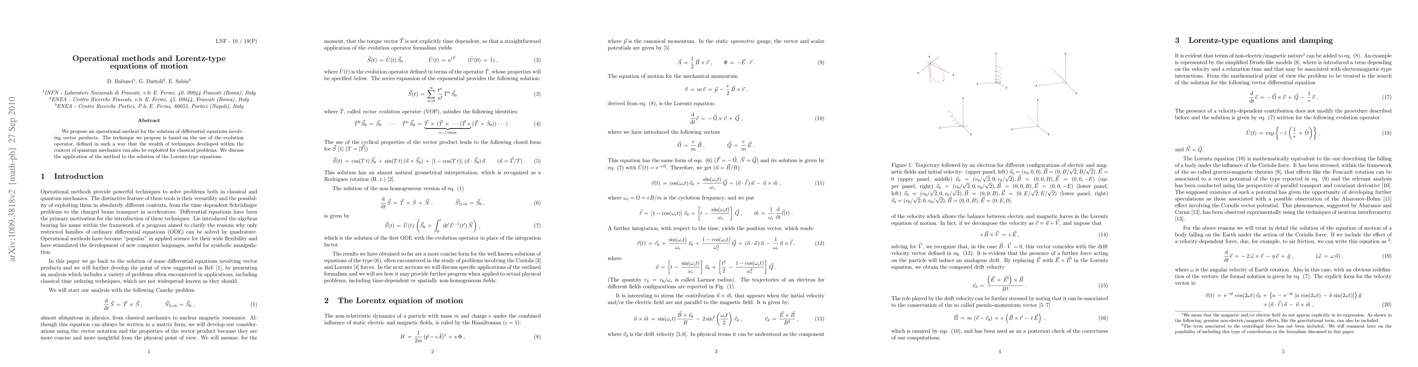 We propose an operational method for the solution of differential equations involving vector products. The technique we propose is based on the use of the evolution operator, defined in such a way that the wealth of techniques developed within the context of quantum mechanics can also be exploited for classical problems. We discuss the application of the method to the solution of the Lorentz-type equations.