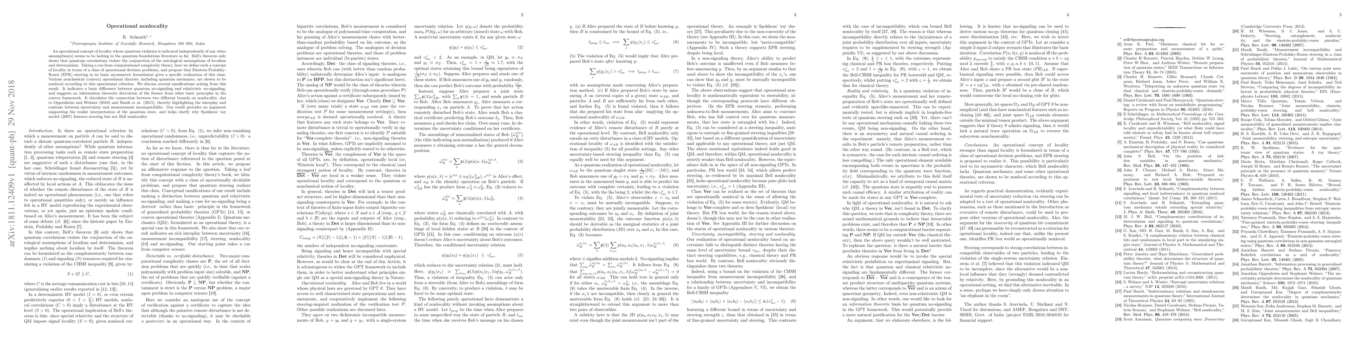 An operational concept of locality whose quantum violation is indicated independently of any other assumption(s) seems to be lacking in the quantum foundations literature so far. Bell's theorem only shows that quantum correlations violate the conjunction of the ontological assumptions of localism and determinism. Taking a cue from computational complexity theory, here we define such a concept of locality in terms of a class of operational decision problems, and propose that Einstein-Podolsky-Rosen (EPR) steering in its basic asymmetric formulation gives a specific realization of this class. Various nonclassical (convex) operational theories, including quantum mechanics, are shown to be nonlocal according to this operational criterion. We discuss several ramifications arising from this result. It indicates a basic difference between quantum no-signaling and relativistic no-signaling, and suggests an information theoretic derivation of the former from other basic principles in the convex framework. It elucidates the connection between two different bounds on nonlocality, due to Oppenheim and Wehner (2010) and Banik et al. (2015), thereby highlighting the interplay and contrast between uncertainty and measurement incompatibility. Our result provides an argument supporting the realist interpretation of the quantum state, and helps clarify why Spekkens' toy model (2007) features steering but not Bell nonlocality.