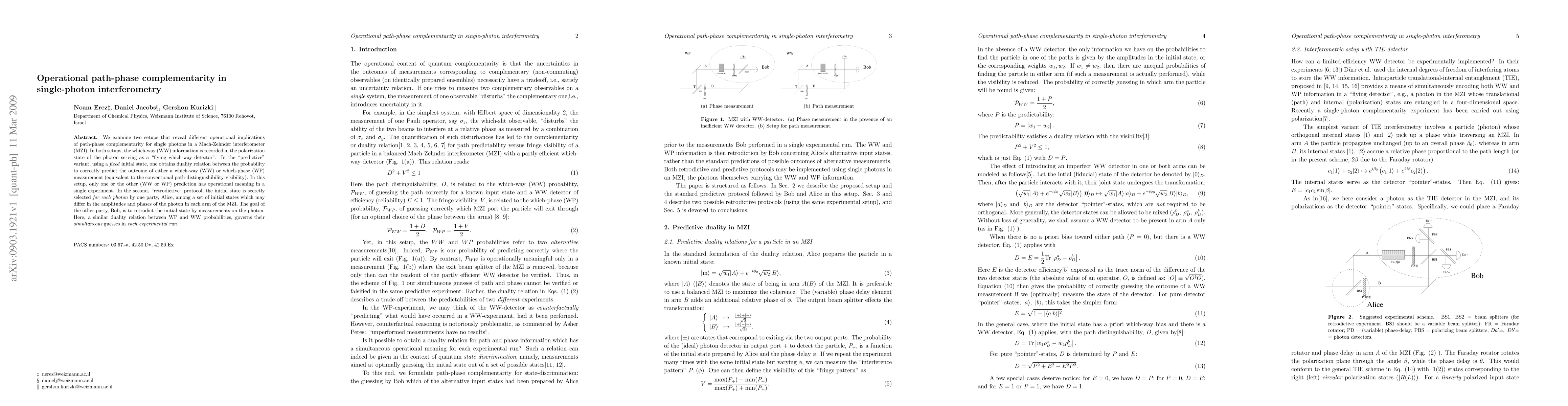 We examine two setups that reveal different operational implications of path-phase complementarity for single photons in a Mach-Zehnder interferometer (MZI). In both setups, the which-way (WW) information is recorded in the polarization state of the photon serving as a "flying which-way detector". In the "predictive" variant, using a {\em fixed} initial state, one obtains duality relation between the probability to correctly predict the outcome of either a which-way (WW) or which-phase (WP) measurement (equivalent to the conventional path-distinguishibility-visibility). In this setup, only one or the other (WW or WP) prediction has operational meaning in a single experiment. In the second, "retrodictive" protocol, the initial state is secretly selected {\em for each photon} by one party, Alice, among a set of initial states which may differ in the amplitudes and phases of the photon in each arm of the MZI. The goal of the other party, Bob, is to retrodict the initial state by measurements on the photon. Here, a similar duality relation between WP and WW probabilities, governs their {\em simultaneous} guesses in {\em each experimental run}.