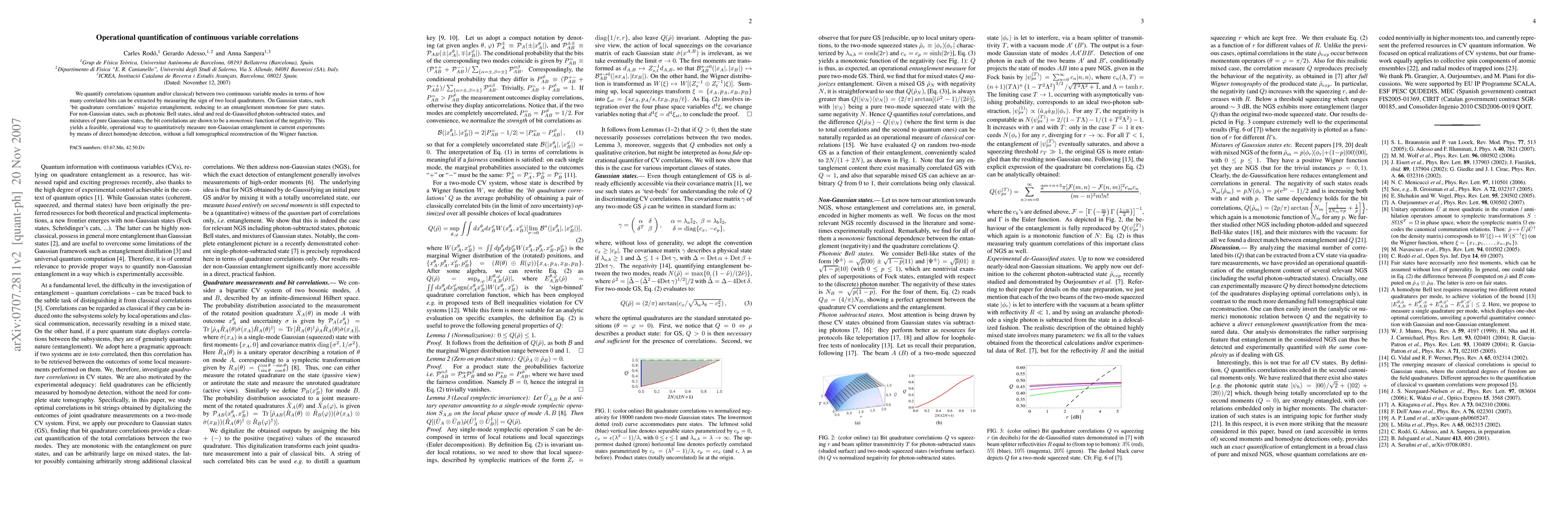 This paper proposes a method to quantify correlations between continuous variable modes by measuring the sign of two local quadratures, extracting correlated bits. For Gaussian states, this method reduces to an entanglement monotone for pure states, and for non-Gaussian states, it correlates monotonically with the negativity, providing a practical approach to measure non-Gaussian entanglement via homodyne detection.