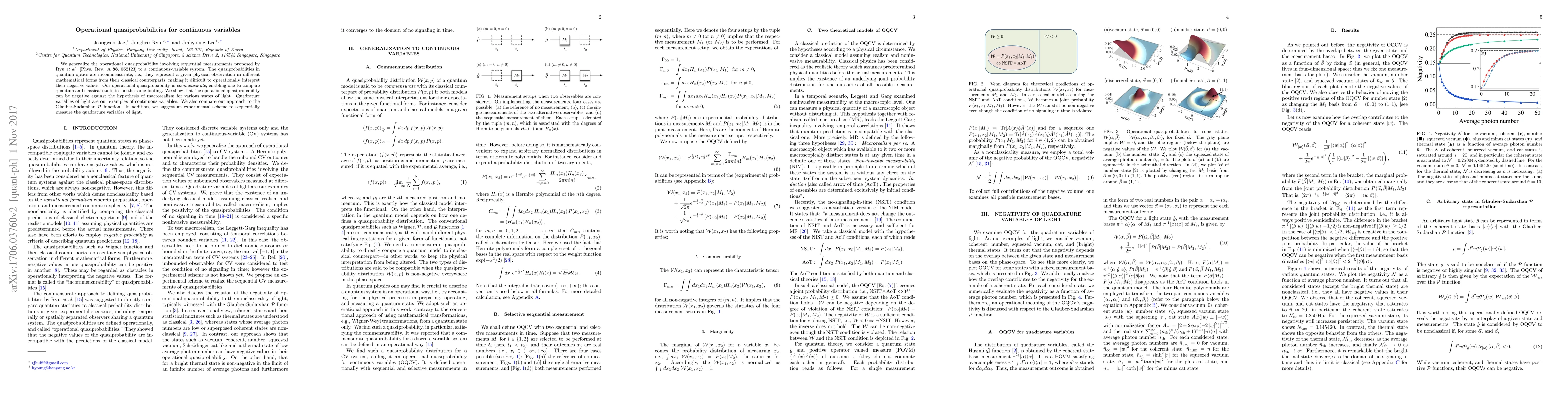 This paper generalizes operational quasiprobabilities for continuous variables, making them commensurate for easier comparison with classical statistics. The authors propose an experimental scheme for measuring quadrature variables and demonstrate that their operational quasiprobability can be negative, challenging macrorealism.
