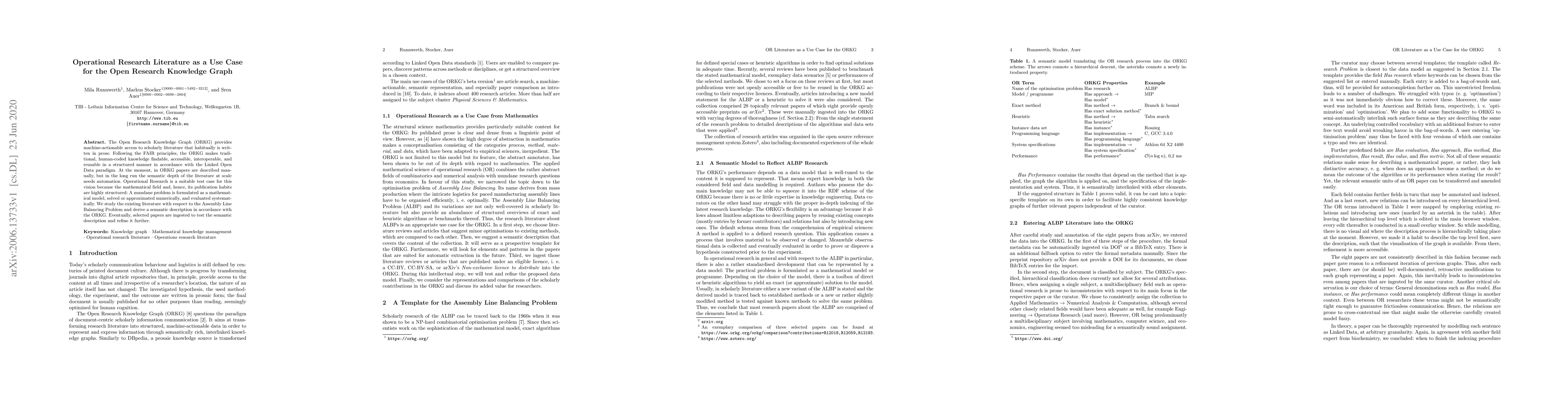 The Open Research Knowledge Graph (ORKG) provides machine-actionable access to scholarly literature that habitually is written in prose. Following the FAIR principles, the ORKG makes traditional, human-coded knowledge findable, accessible, interoperable, and reusable in a structured manner in accordance with the Linked Open Data paradigm. At the moment, in ORKG papers are described manually, but in the long run the semantic depth of the literature at scale needs automation. Operational Research is a suitable test case for this vision because the mathematical field and, hence, its publication habits are highly structured: A mundane problem is formulated as a mathematical model, solved or approximated numerically, and evaluated systematically. We study the existing literature with respect to the Assembly Line Balancing Problem and derive a semantic description in accordance with the ORKG. Eventually, selected papers are ingested to test the semantic description and refine it further.