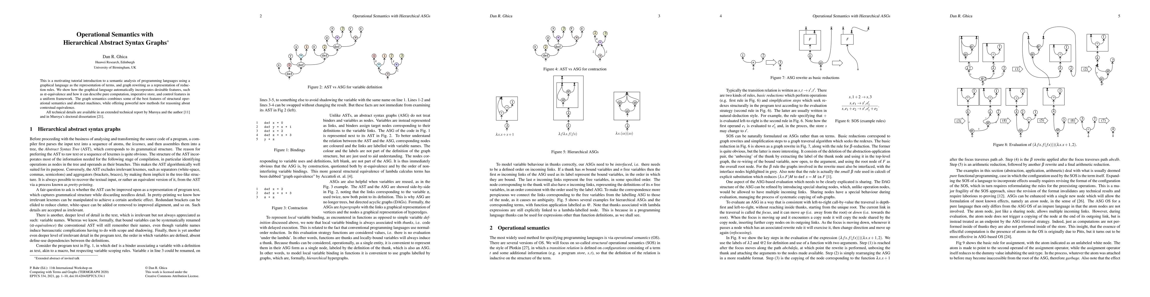 This paper introduces a semantic analysis of programming languages using hierarchical abstract syntax graphs and graph rewriting for reduction rules, combining structural operational semantics and abstract machines for contextual equivalence. The graphical representation inherently supports alpha-equivalence and unifies pure computation, imperative store, and control features.