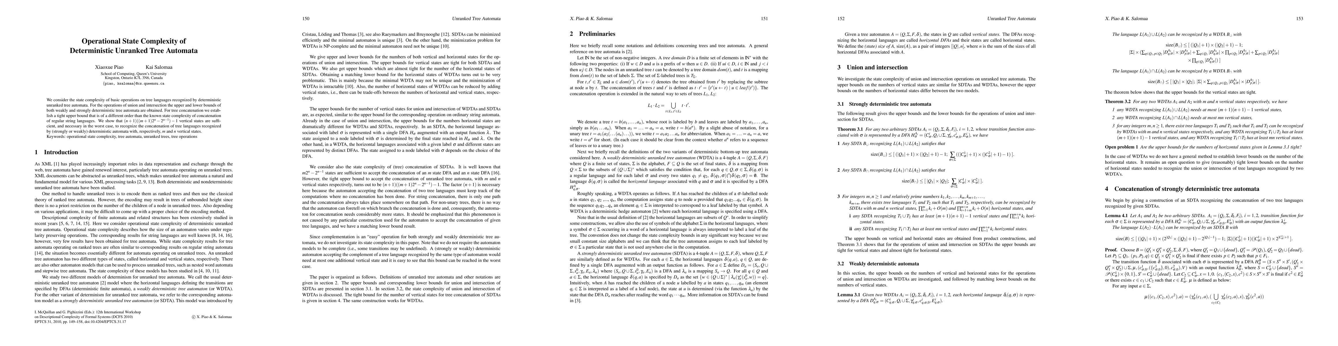 This paper investigates the state complexity of basic operations on tree languages recognized by deterministic unranked tree automata, establishing tight bounds for union, intersection, and concatenation, revealing a different order of complexity for tree concatenation compared to regular string languages.