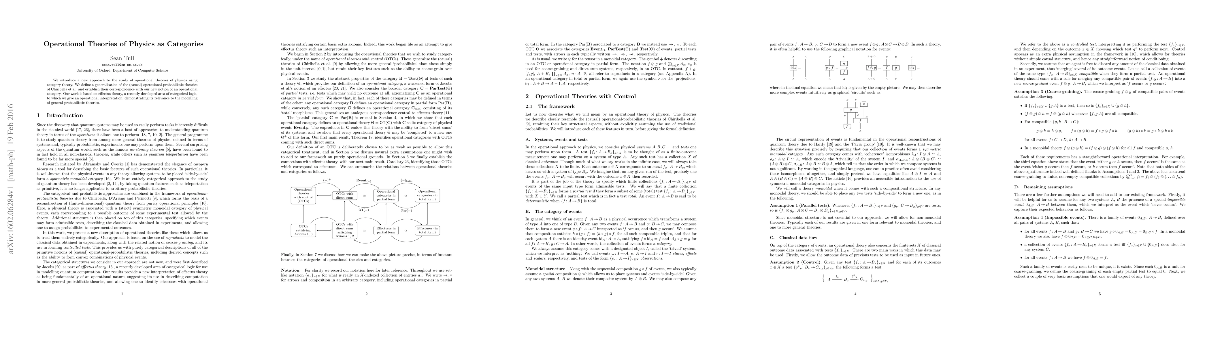 We introduce a new approach to the study of operational theories of physics using category theory. We define a generalisation of the (causal) operational-probabilistic theories of Chiribella et al. and establish their correspondence with our new notion of an operational category. Our work is based on effectus theory, a recently developed area of categorical logic, to which we give an operational interpretation, demonstrating its relevance to the modelling of general probabilistic theories.