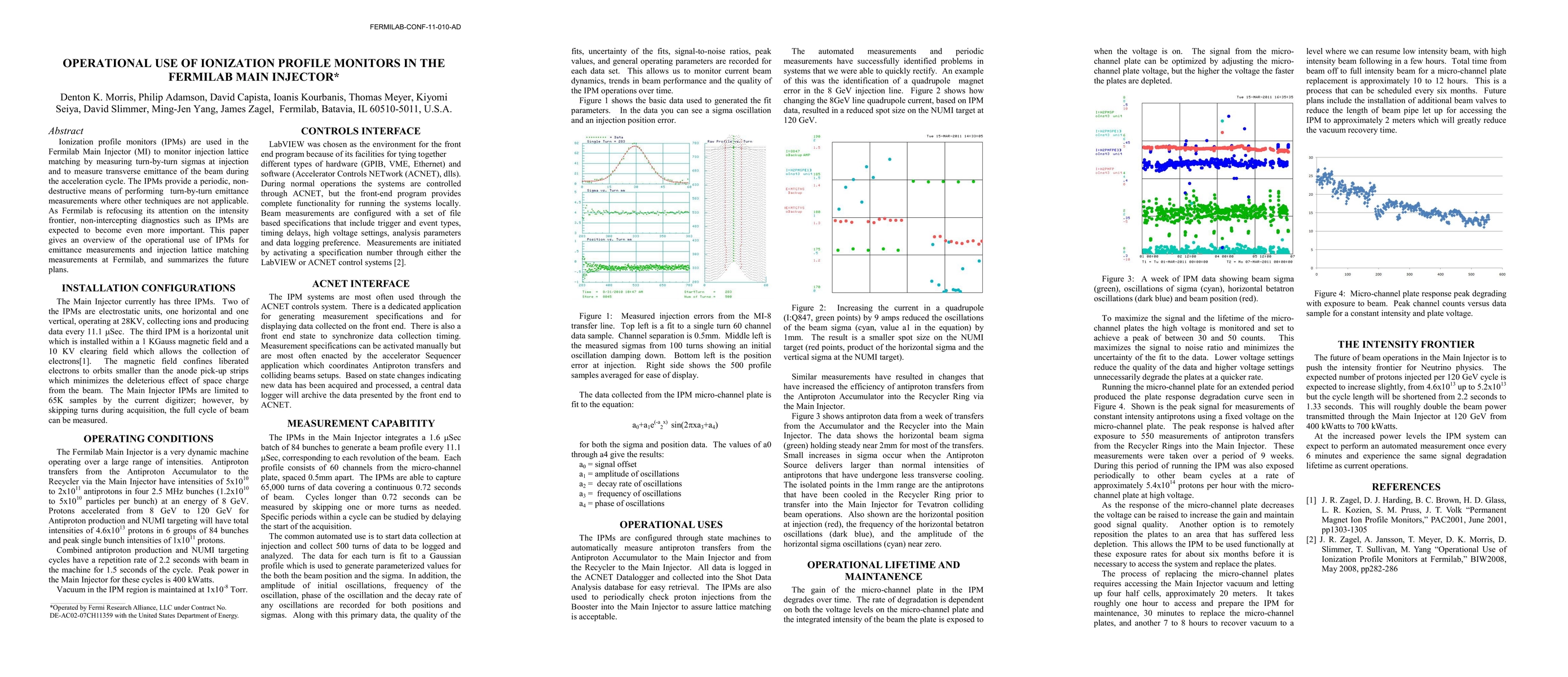 This paper discusses the operational use of ionization profile monitors (IPMs) at Fermilab Main Injector for monitoring injection lattice matching and measuring beam transverse emittance. It highlights the importance of non-intercepting diagnostics like IPMs for future intensity frontier research and summarizes current applications and future plans.