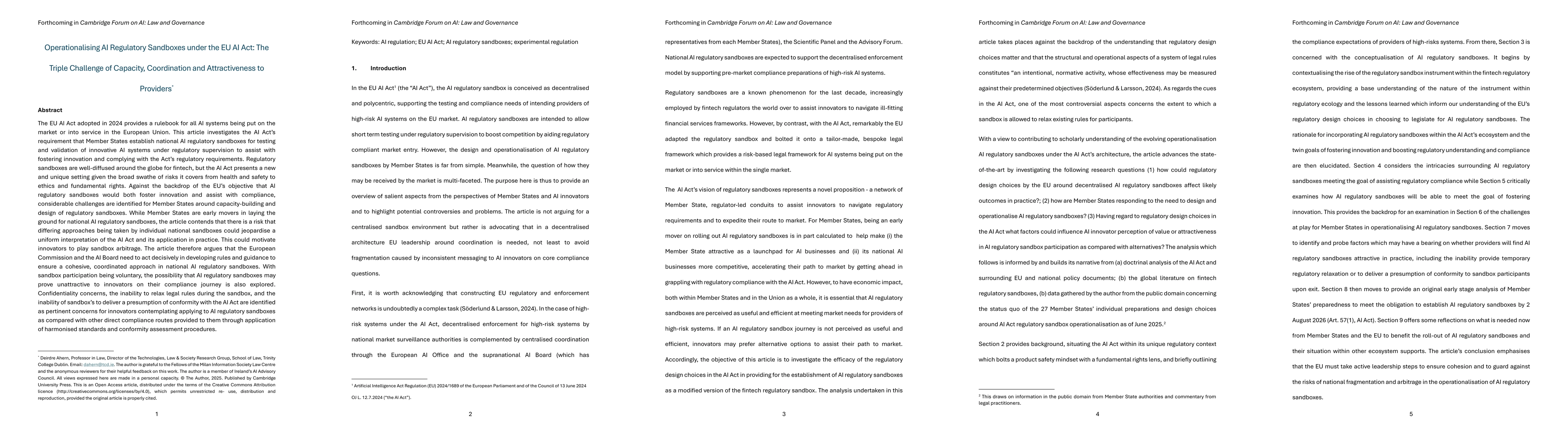 The EU AI Act provides a rulebook for all AI systems being put on the market or into service in the European Union. This article investigates the requirement under the AI Act that Member States establish national AI regulatory sandboxes for testing and validation of innovative AI systems under regulatory supervision to assist with fostering innovation and complying with regulatory requirements. Against the backdrop of the EU objective that AI regulatory sandboxes would both foster innovation and assist with compliance, considerable challenges are identified for Member States around capacity-building and design of regulatory sandboxes. While Member States are early movers in laying the ground for national AI regulatory sandboxes, the article contends that there is a risk that differing approaches being taken by individual national sandboxes could jeopardise a uniform interpretation of the AI Act and its application in practice. This could motivate innovators to play sandbox arbitrage. The article therefore argues that the European Commission and the AI Board need to act decisively in developing rules and guidance to ensure a cohesive, coordinated approach in national AI regulatory sandboxes. With sandbox participation being voluntary, the possibility that AI regulatory sandboxes may prove unattractive to innovators on their compliance journey is also explored. Confidentiality concerns, the inability to relax legal rules during the sandbox, and the inability of sandboxes to deliver a presumption of conformity with the AI Act are identified as pertinent concerns for innovators contemplating applying to AI regulatory sandboxes as compared with other direct compliance routes provided to them through application of harmonised standards and conformity assessment procedures.
