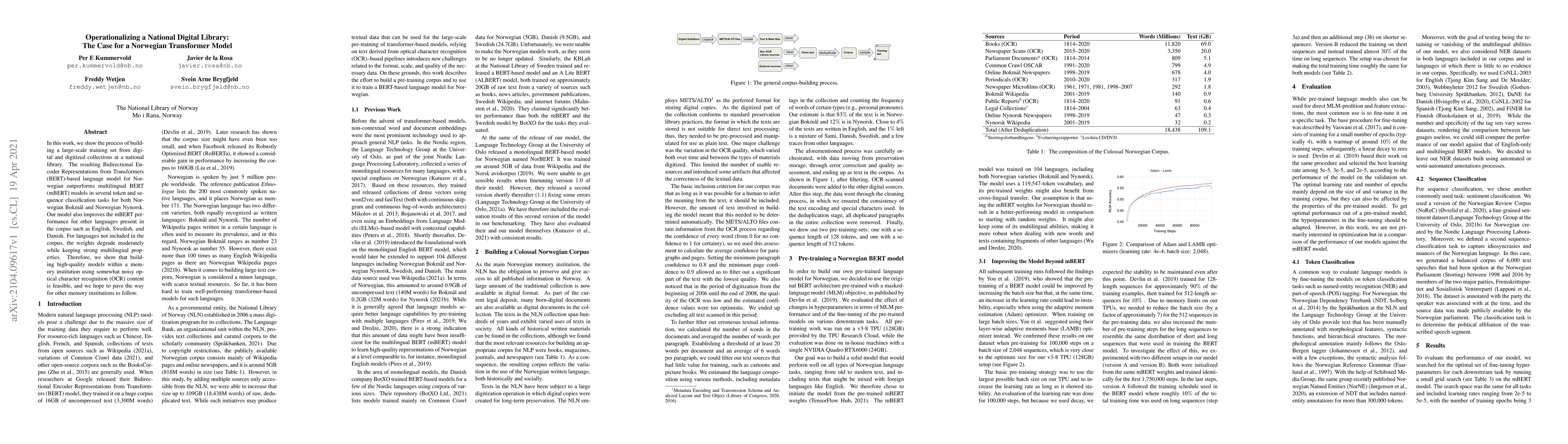 This paper details the creation of a large-scale training set from a national library's digital collections, leading to a BERT-based Norwegian language model that outperforms multilingual BERT in classification tasks. The resulting model also enhances mBERT performance for other languages in the corpus, demonstrating the feasibility of high-quality model building using OCR data.