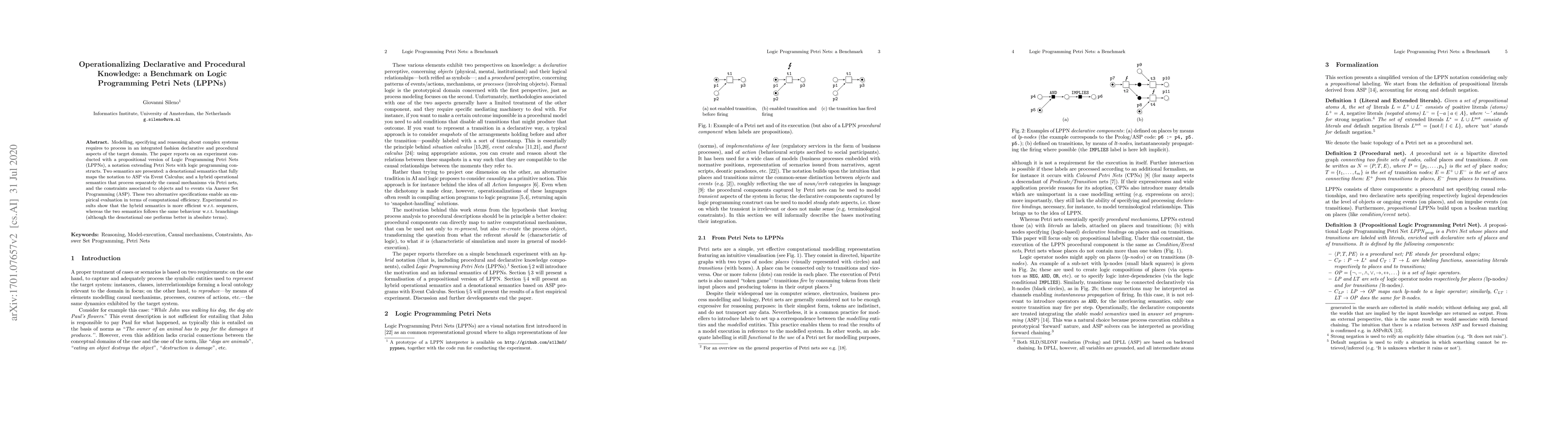 This paper explores Logic Programming Petri Nets (LPPNs) as a method to integrate declarative and procedural knowledge in complex system modelling. It presents two semantics: a denotational one based on Answer Set Programming (ASP) and a hybrid operational semantics, and evaluates their computational efficiency, finding the hybrid approach more effective for sequences.
