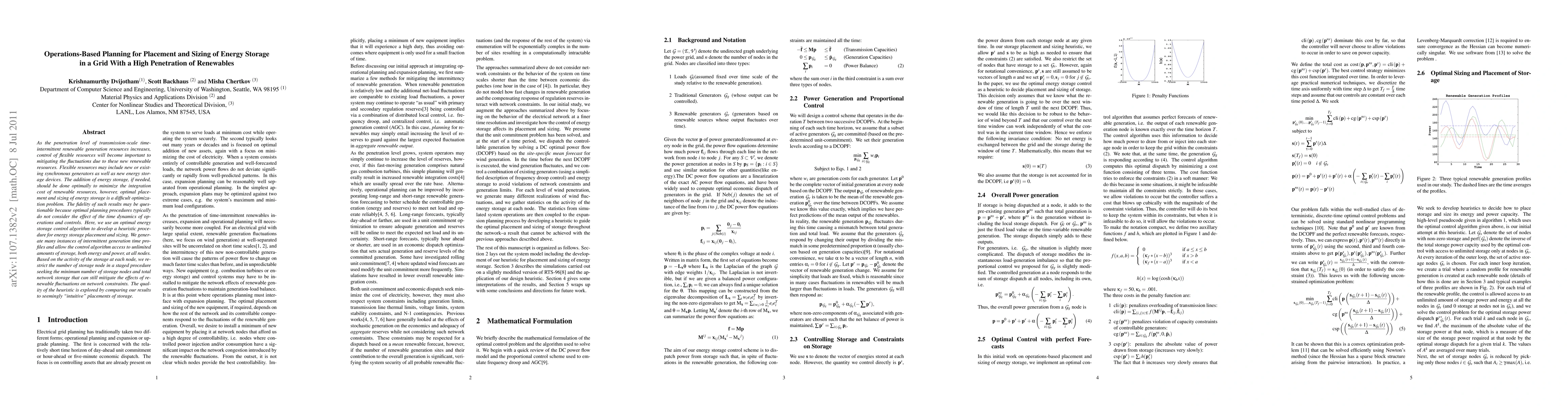 As the penetration level of transmission-scale time-intermittent renewable generation resources increases, control of flexible resources will become important to mitigating the fluctuations due to these new renewable resources. Flexible resources may include new or existing synchronous generators as well as new energy storage devices. The addition of energy storage, if needed, should be done optimally to minimize the integration cost of renewable resources, however, optimal placement and sizing of energy storage is a difficult optimization problem. The fidelity of such results may be questionable because optimal planning procedures typically do not consider the effect of the time dynamics of operations and controls. Here, we use an optimal energy storage control algorithm to develop a heuristic procedure for energy storage placement and sizing. We generate many instances of intermittent generation time profiles and allow the control algorithm access to unlimited amounts of storage, both energy and power, at all nodes. Based on the activity of the storage at each node, we restrict the number of storage node in a staged procedure seeking the minimum number of storage nodes and total network storage that can still mitigate the effects of renewable fluctuations on network constraints. The quality of the heuristic is explored by comparing our results to seemingly "intuitive" placements of storage.