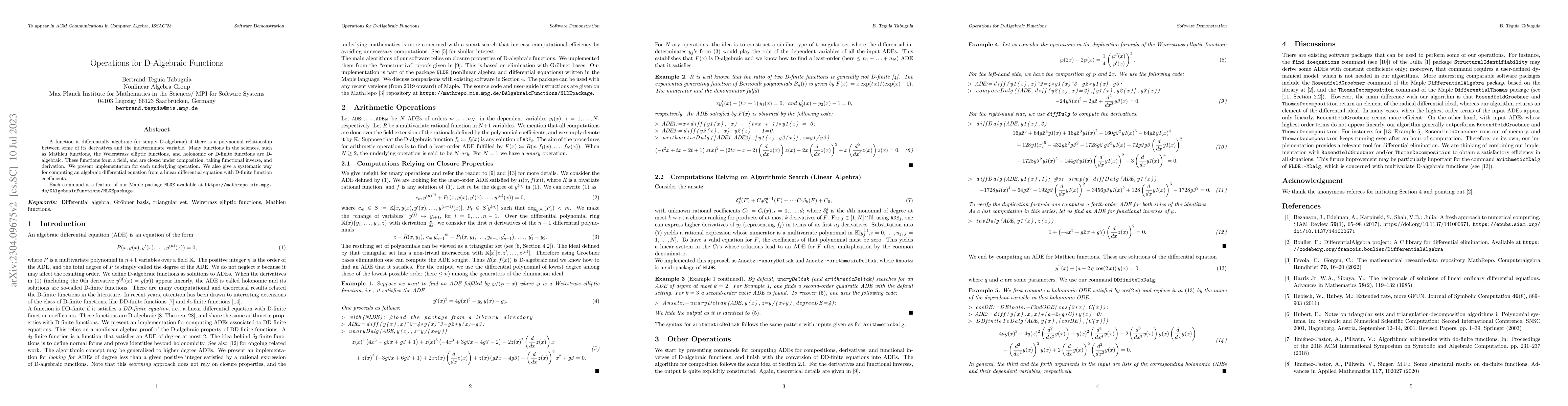 This paper introduces operations for D-algebraic functions, which are functions satisfying polynomial relationships between their derivatives and the variable. It presents a Maple package, $NLDE$, for implementing these operations and provides a systematic method for deriving algebraic differential equations from linear differential equations with D-finite function coefficients.